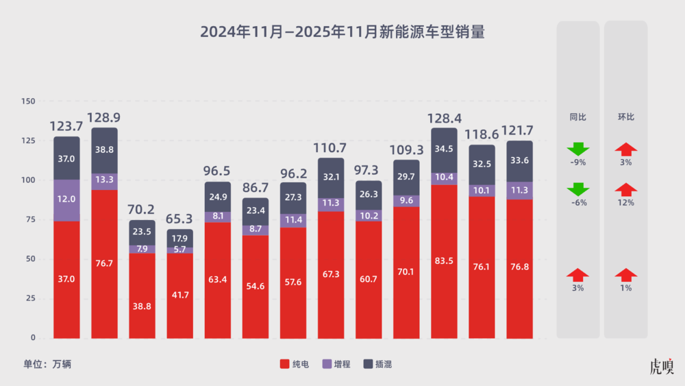 此外需要说明,新能源汽车不仅指纯电动车型,还包括插电混动和增程式两类主流技术路线。而完全依赖燃油、不含电力驱动的传统车型,预计三年后在新增购车中的比例将大幅缩减。