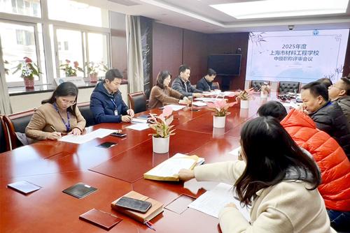 上海市材料工程学校于12月15日在清竹楼4楼会议室举行2025年度中级职称评审会议。会议以公正、客观为核心原则,围绕师德师风、教科研成果、工作业绩、教育教学能力等关键维度,对申报教师进行全面细致的综合考评,最终确定评审通过名单。学校专业技术职务聘任委员会委员出席会议,校党委副书记、纪委书记徐海洋列席会议,全程监督评审工作。