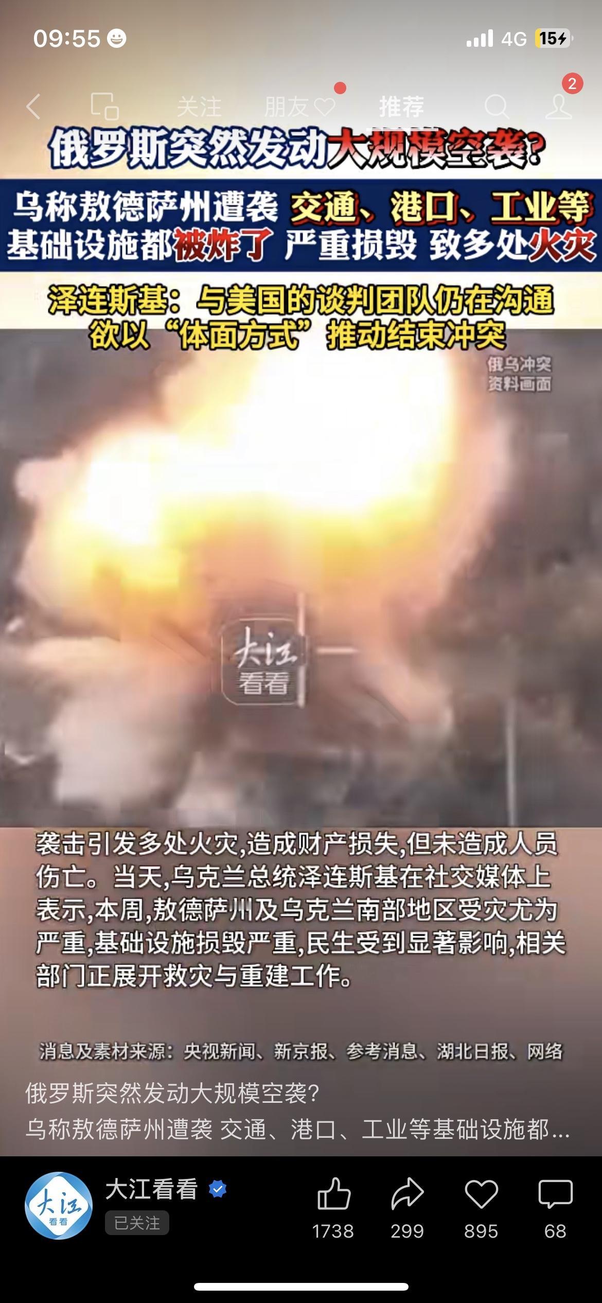 俄乌冲突再升级!敖德萨遭大规模空袭,港口设施全毁! 我表哥在敖德萨做外贸,货物全被困在港口,损失惨重。 泽连斯基喊话美国,希望“体面”结束冲突。 俄罗斯暂无回应,局势越来越复杂了! 你觉得俄乌冲突何时能迎来和平?