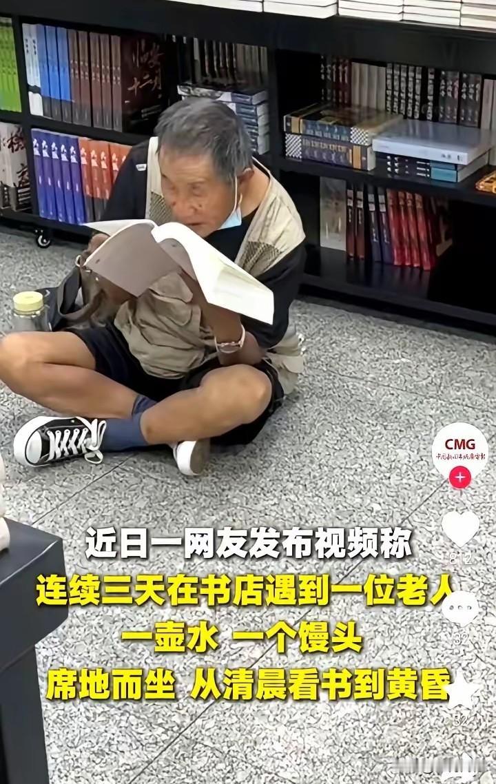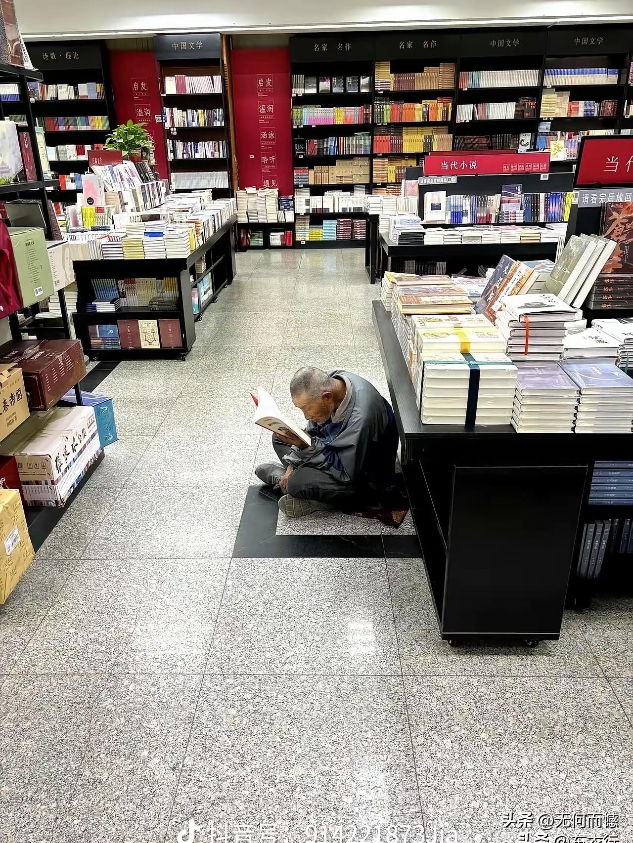 老人在书店读书的画面,让人感觉很是惊讶,一方面是现在读书的人太少了,这样的画面很少看到,尤其是当看到一个老人在书店里,坐在地上聚精会神的看书时,的确给人带来很大的震撼。另一方面是老人读书的劲头和状态,看着如醉如痴,整个人已经完全投入进去了,现在老人还能有这样的爱好,真是让人无比的尊敬!重视老人的眼神也非常的好,看他并没有戴镜子,这一点更让人佩服!