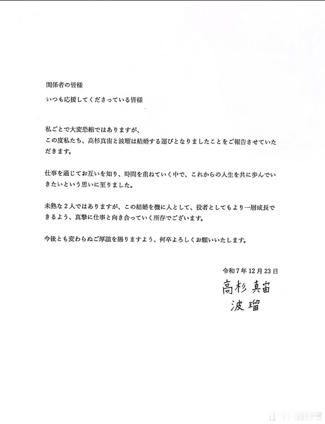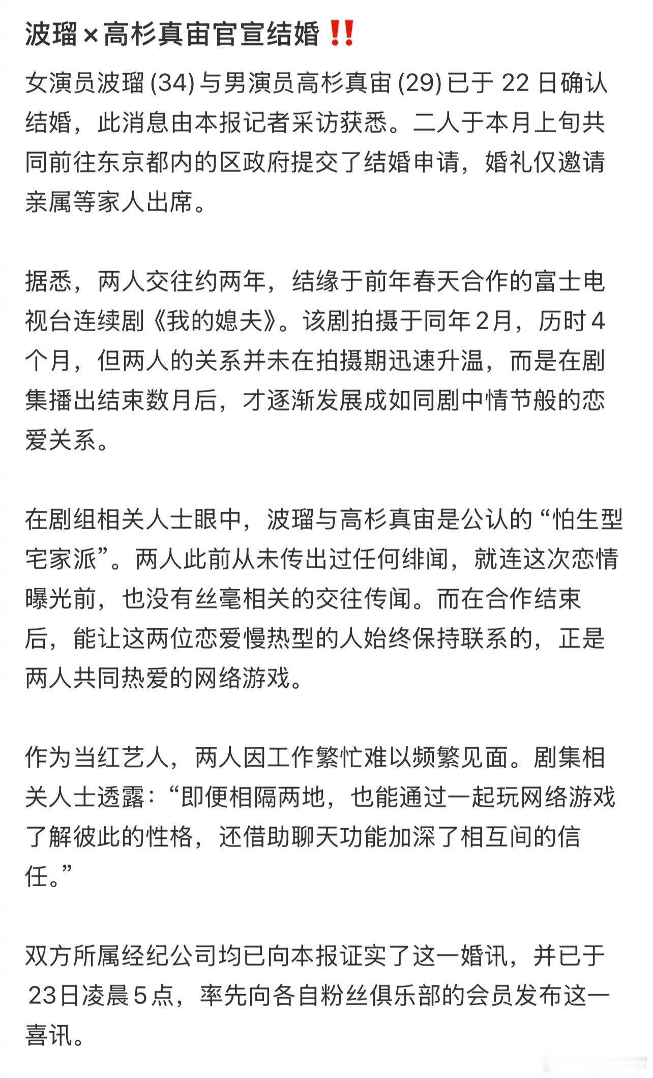 波瑠和高杉真宙交往两年官宣结婚波瑠高杉真宙结婚
