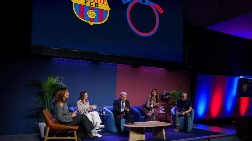 这位巴萨主席来到了座无虚席的1899礼堂,出席一项慈善活动的发布:“蓝红手环”。他由基金会总监玛尔塔-塞古陪同,俱乐部副主席博伊克斯、尤斯特以及埃琳娜-福特也一同出席。