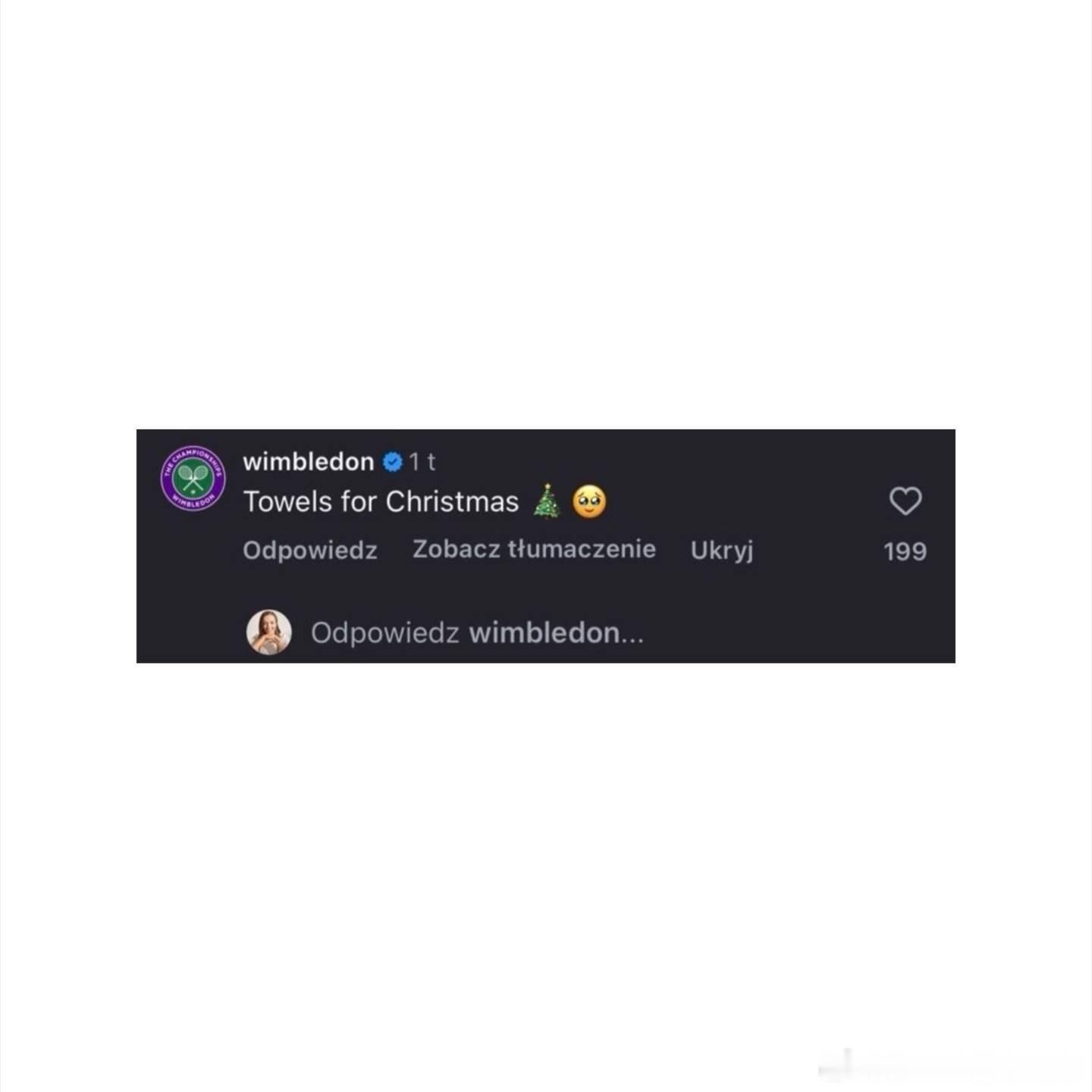 全世界都知道斯瓦泰克需要什么温网组委会贴心的给她寄去了毛巾做圣诞礼物,不过好像条