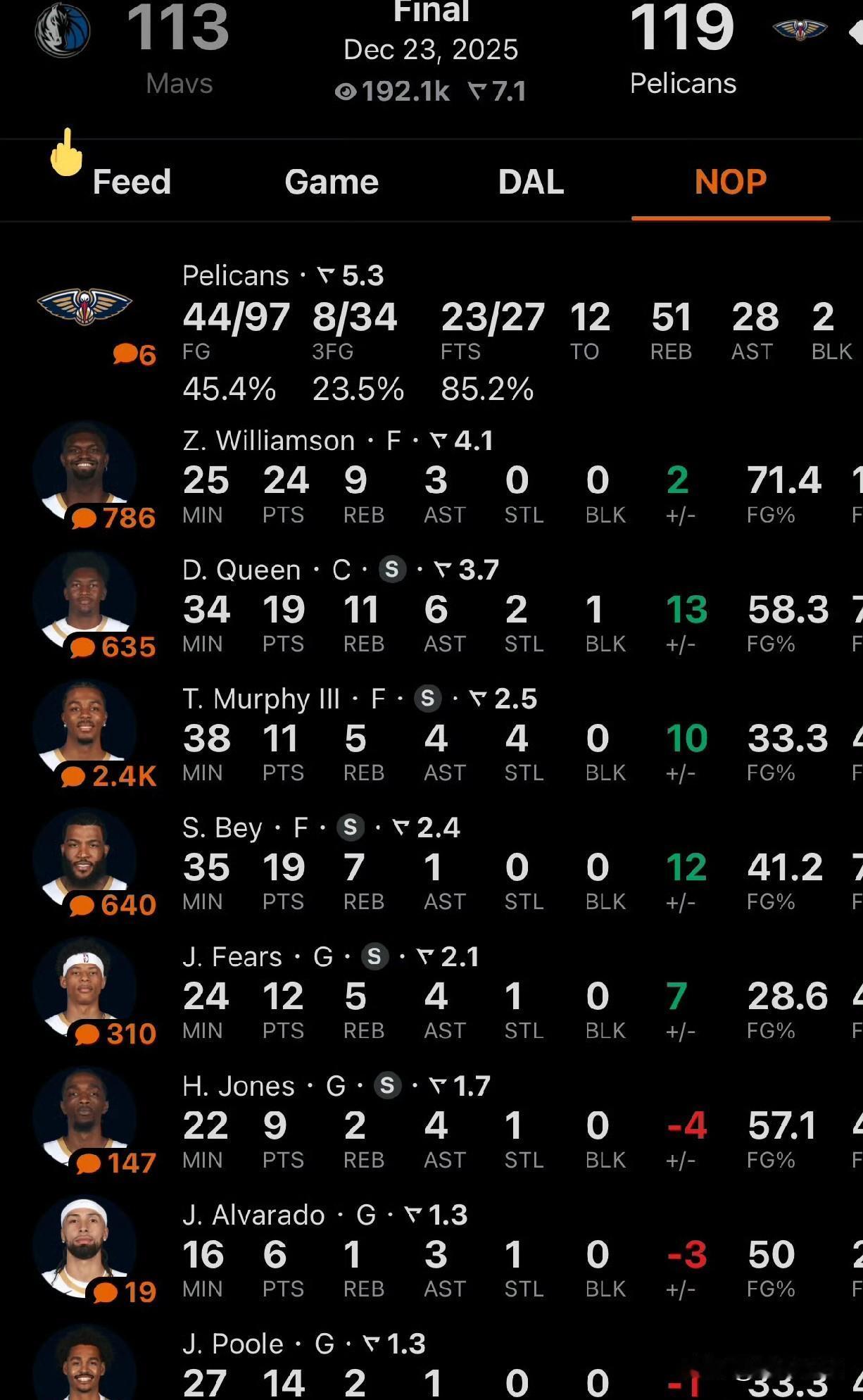 快船学着点!鹈鹕队五连胜了! 今天,鹈鹕队又赢球了,锡安在最后时刻连得10分,成功带领球队完成逆转,最终以119-113战胜独行侠队,豪取5连胜。全场比赛,锡安得到24分9篮板3助攻,奎因得到19分11篮板6助攻,贝利得到19分7篮板,普尔14分。 值得一提的是,鹈鹕队本赛季在战绩不佳时解雇了主教练威利-格林,虽然也经历了换帅后的起起伏伏,但最终走向了正轨,目前取得了一波5连胜。而鹈鹕队的赢球密码也非常简单,新任主教练大胆启用新人,让他们首发出战,年轻人体力满满,斗志昂扬在前期可以咬住比分。让锡安、普尔替补,关键时刻让他们上场收割比赛。锡安复出后的4场比赛全部替补出战,鹈鹕队保持全胜。 随着鹈鹕队今天取胜,他们的排名再度反超快船队,升至西部第13位,或许快船队可以学习一下鹈鹕队的做法,先动一下主教练试试?