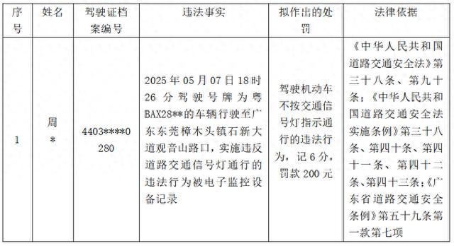 驾驶人周*,驾驶沃迪投资控股(深圳)有限公司的粤BAX28**的车辆,因道路交通违法行为被电子监控设备记录,当事人未在限定期限内接受处理。根据《中华人民共和国行政处罚法》第四十四条、《公安机关办理行政案件程序规定》第一百八十条等规定,现将其对应违法事实、理由和处罚依据公告告知如下,根据《中华人民共和国行政处罚法》第四十五条的规定,当事人有提出陈述和申辩的权利。如提出陈述和申辩,请自公告之日起七日内向东莞市公安局交通管理支队樟木头大队(地址:东莞市樟木头镇景福路5号,联系人:文警官,联系电话:0769-87703631)提出,逾期不提出的视为放弃陈述和申辩。