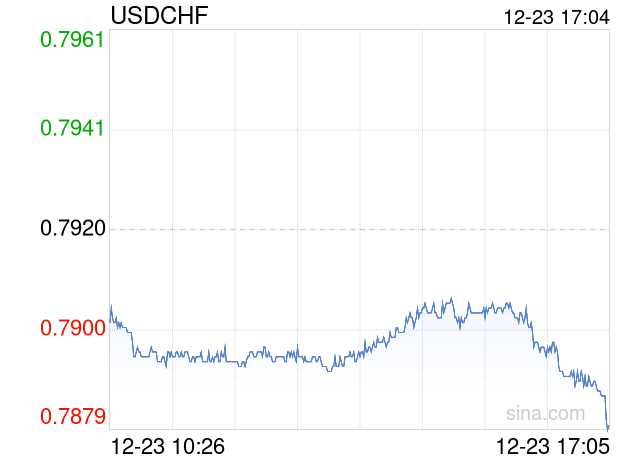 12月23日 美元兑瑞士法郎跌破0.7879 折算100瑞士法郎汇率兑891.9811人民币