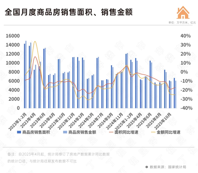 2025年11月份,70个大中城市商品住宅销售价格环比总体下降、同比降幅扩大。