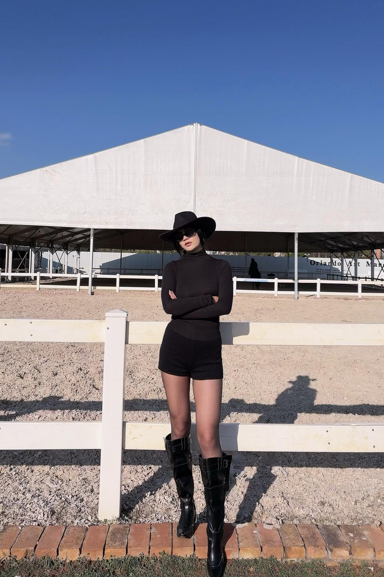 是公主也是骑士🏇🏻|||全黑穿搭把马场的飒气拉满 高领打底的修身感刚好勾勒出线条 短裤配黑丝又添了点慵懒的小性感 踩上堆堆骑士靴 把随性和酷劲儿都穿在了身上真皮材质+复古褶皱设计 粗跟结构超稳 长时间穿也不累! 靴筒不过膝 显瘦又修饰腿型 宽筒围对粗腿超友好 舒适又时髦黑长靴穿搭 黑丝酷穿搭 黑丝靴穿搭 黑长筒靴穿搭