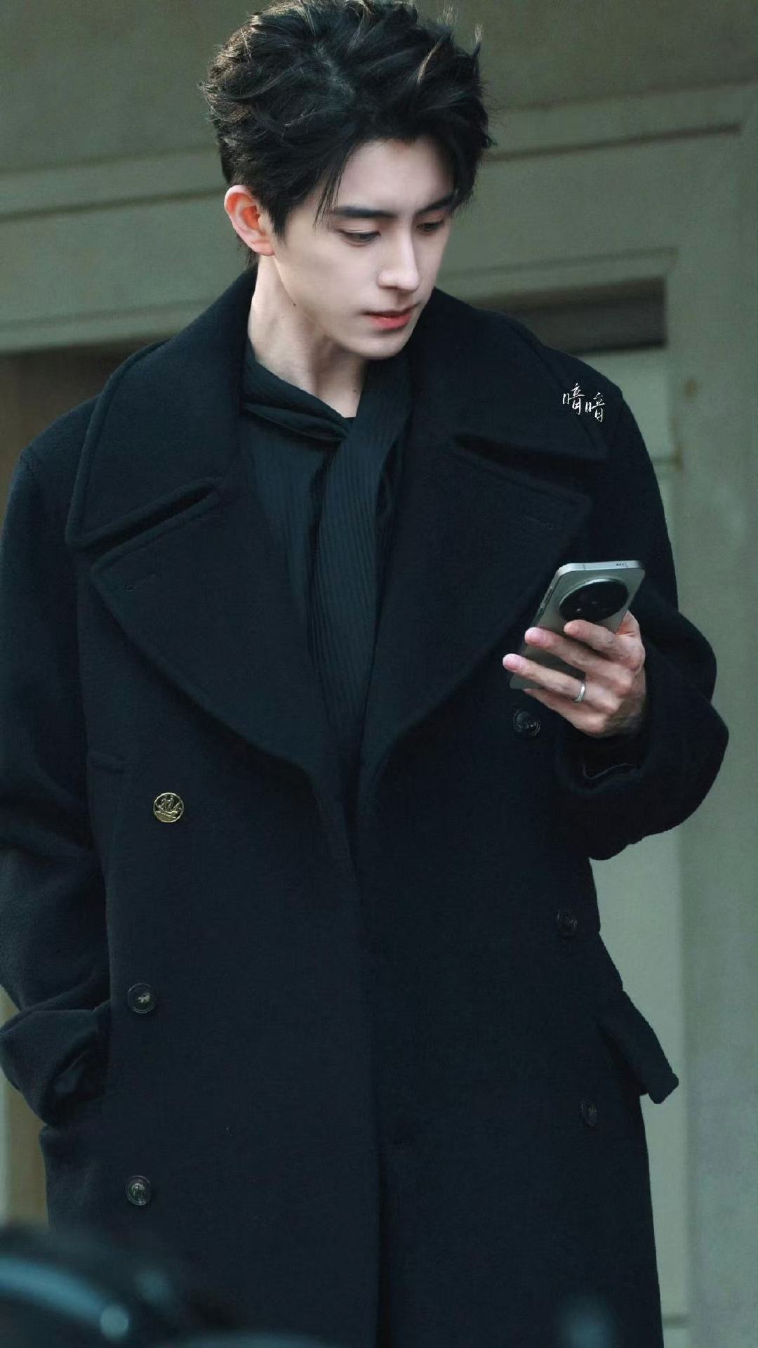 敖瑞鹏岑森黑色大衣look 岑森人夫感这一块拿捏了~黑色大衣搭配无名指的戒指太绝