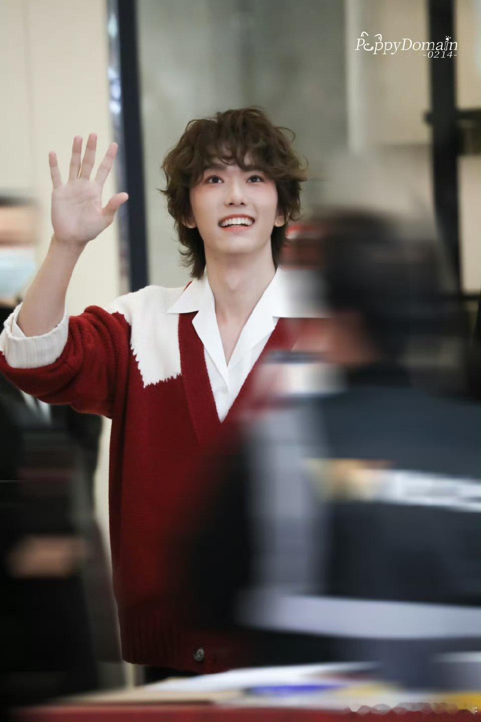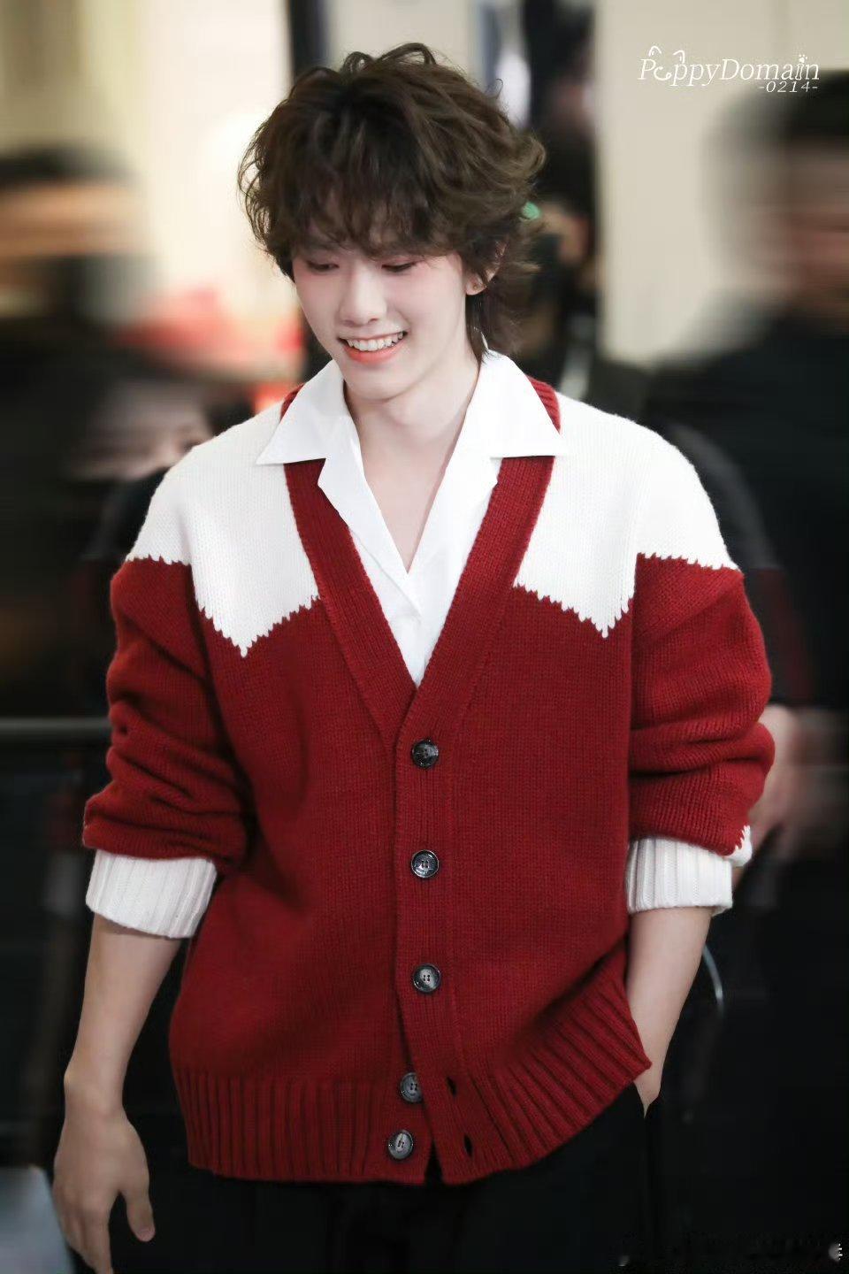 马柏全品牌活动路透,卷卷毛太可爱了 红色毛衬衫好可爱青春