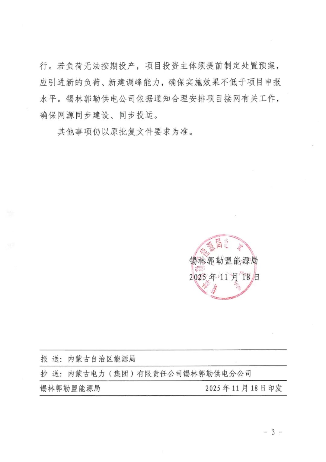 中盐吉兰泰氯碱化工有限公司燃煤自备电厂可再生能源替代项目(75MW风电工程)建设地点为阿拉善高新技术产业开发区境内,建设单位为中盐吉兰泰氯碱化工有限公司,同意将项目核准文件建设内容变更为:本项目拟建设8台8.5MW风电机组及1台7.15MW风电机组,总装机容量75MW,新建220kV升压站一座,配套建设风机箱变、16.2MW/32.4MWh储能、集电线路杆塔及检修道路等辅助设施。