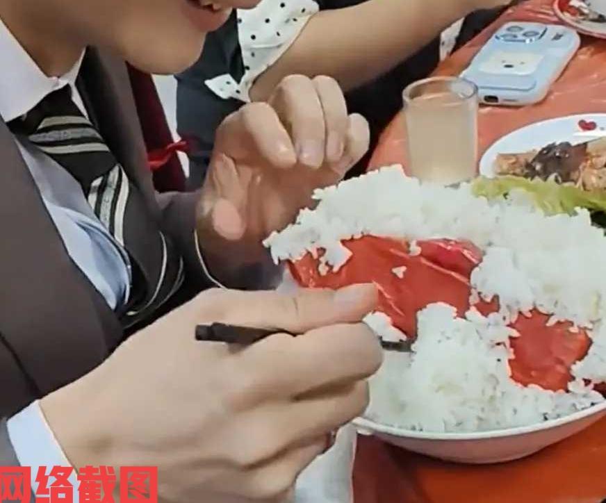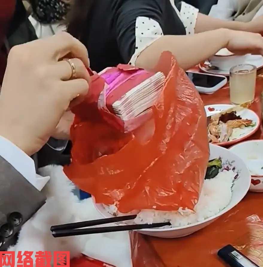 浙江有新人结婚,按照习俗要吃一大碗米饭。 新郎也没有犹豫,直接选择了大口吃饭,快要吃到碗底时,看到碗底有个红色方便袋,里面好像还有什么东西,新郎在诧异中打开袋子一看,竟然是百元现金还有金戒指。 这把新郎高兴万分,金戒指自己直接套在手指上,而现金也是交给了身边的新娘,把在现场的亲朋好友都看乐了,在这样的习俗里,看到赋予新人的美好祝福,让她们在新的生活中,充满美好的机遇和幸福未来。 这也是老一辈们留下的寓意,希望新人踏踏实实过日子,好好存储生活的幸福快乐,这样的生活才能红红火火,一辈子衣食无忧,这里是一种寄望一种令人羡慕的向往生活,生活需要努力幸福需要奋斗。 想必新郎也会明白其中的意味,这以后的生活定然要与新娘一起,勇于承担家庭责任,一起向着美好的未来前行。