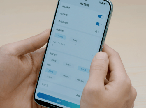接入层则选用新华三小贝US110系列交换机,该设备支持云管/无管双模式自由切换,操作便捷性拉满,仅需通过专属APP或简优云平台即可完成模式切换。切换至云管模式后,运维人员还能借助小贝APP或简优云平台,一键完成VLAN划分、防环路防私接配置、端口风暴抑制等核心运维操作。这一特性不仅大幅简化了企业网络的部署流程,还能有效降低现场操作的人力与时间成本,显著提升整体网络运维效率。