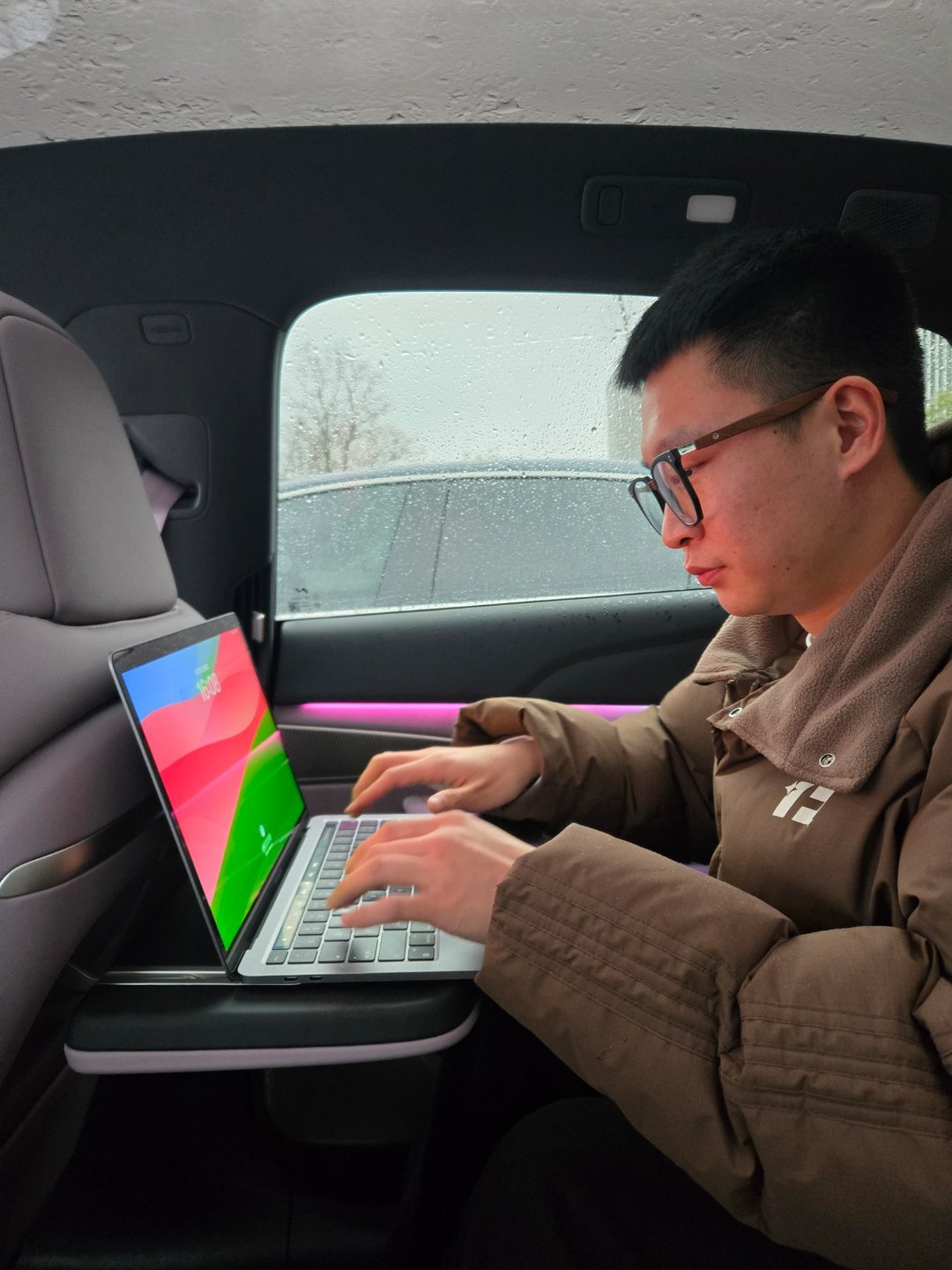 跟我一起提车的还有剪辑小伙伴,提了一台L60 25款,还给自己选配了个牛马桌板,估计他是准备随时随地加班。