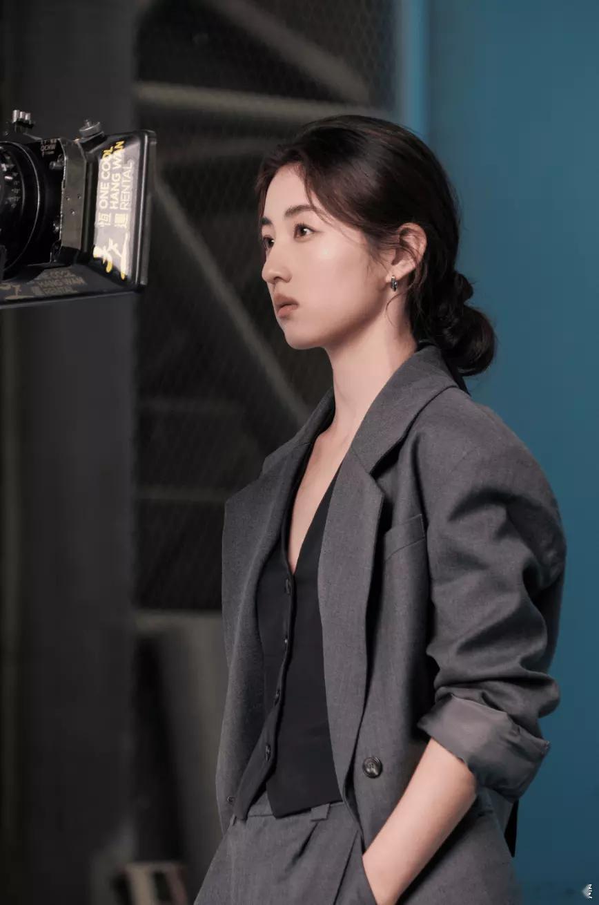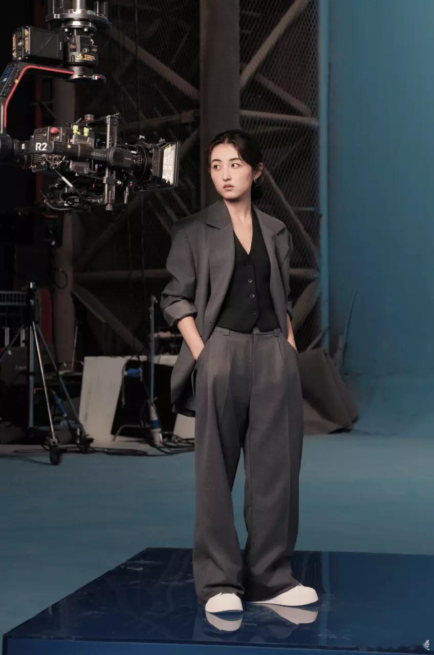 文亦娱乐张子枫身着宽松西装神态专注 垂眸沉思气场干练