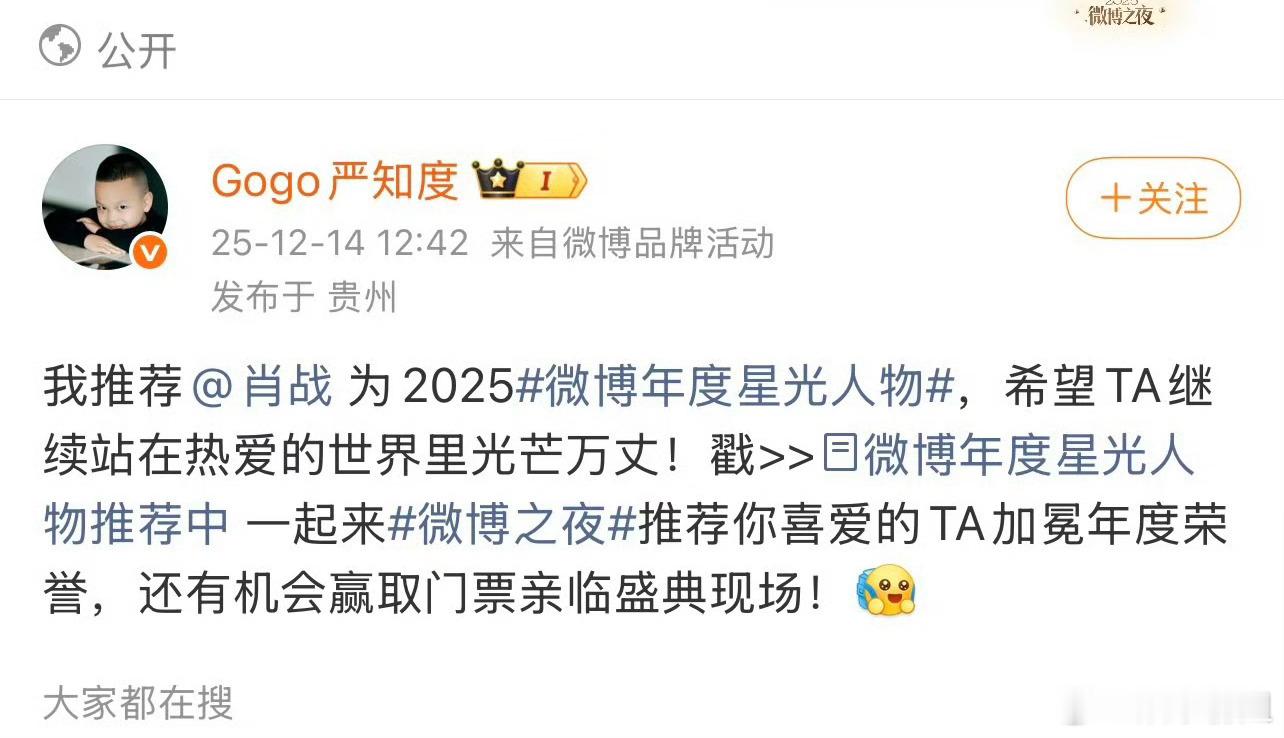 粉上肖战人之常情《小城良方》剧组同事王彦霖和《得闲谨制》"儿子"莫得闲扮演者Gogo都给肖战投票《微博之夜》King战战人缘也太好了吧👍🏻和肖战合作过的都说好的含金量还在上升🆙了解肖战爱上肖战,人之常情2025娱乐年终盘点非正式跨年派对