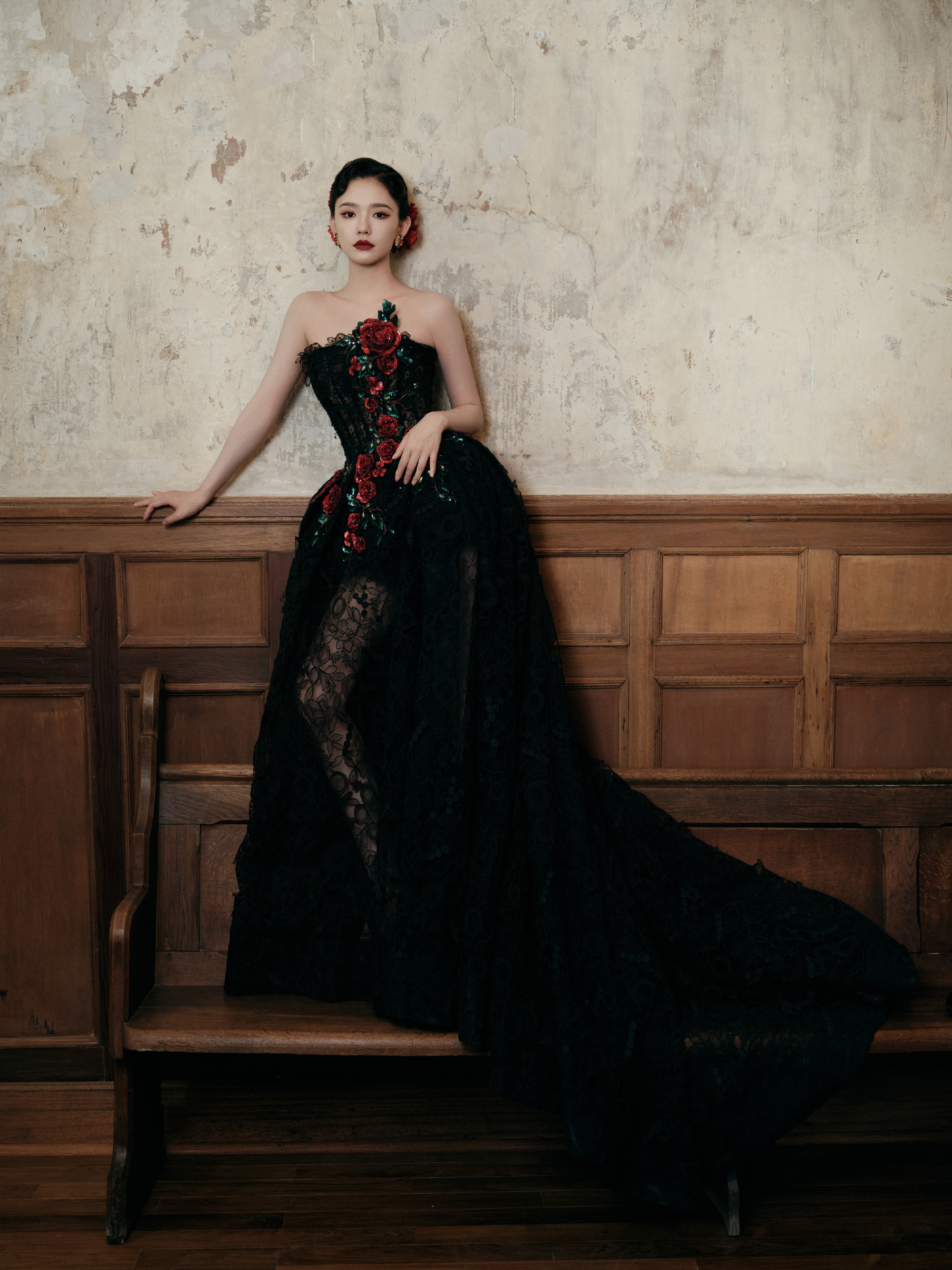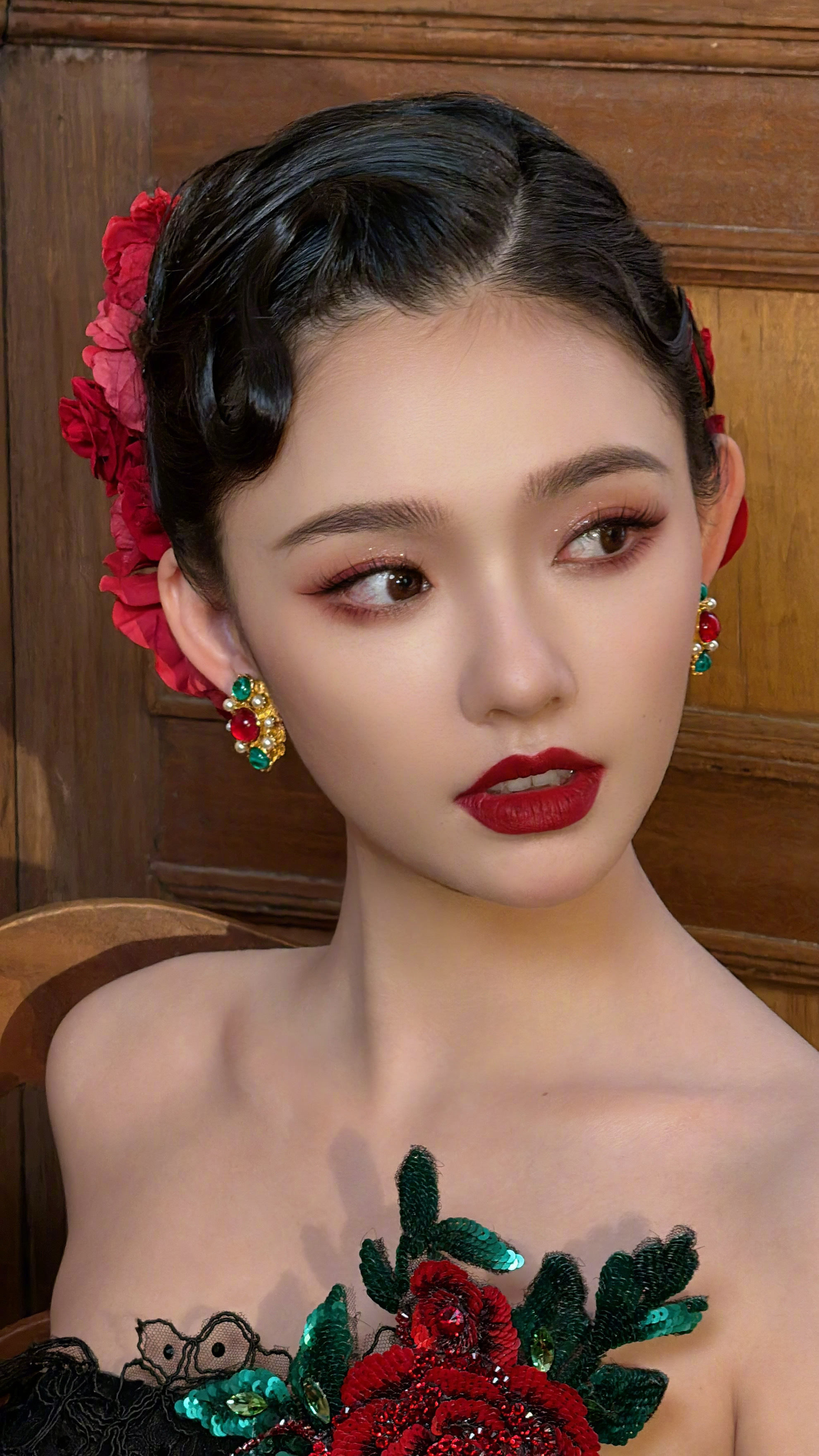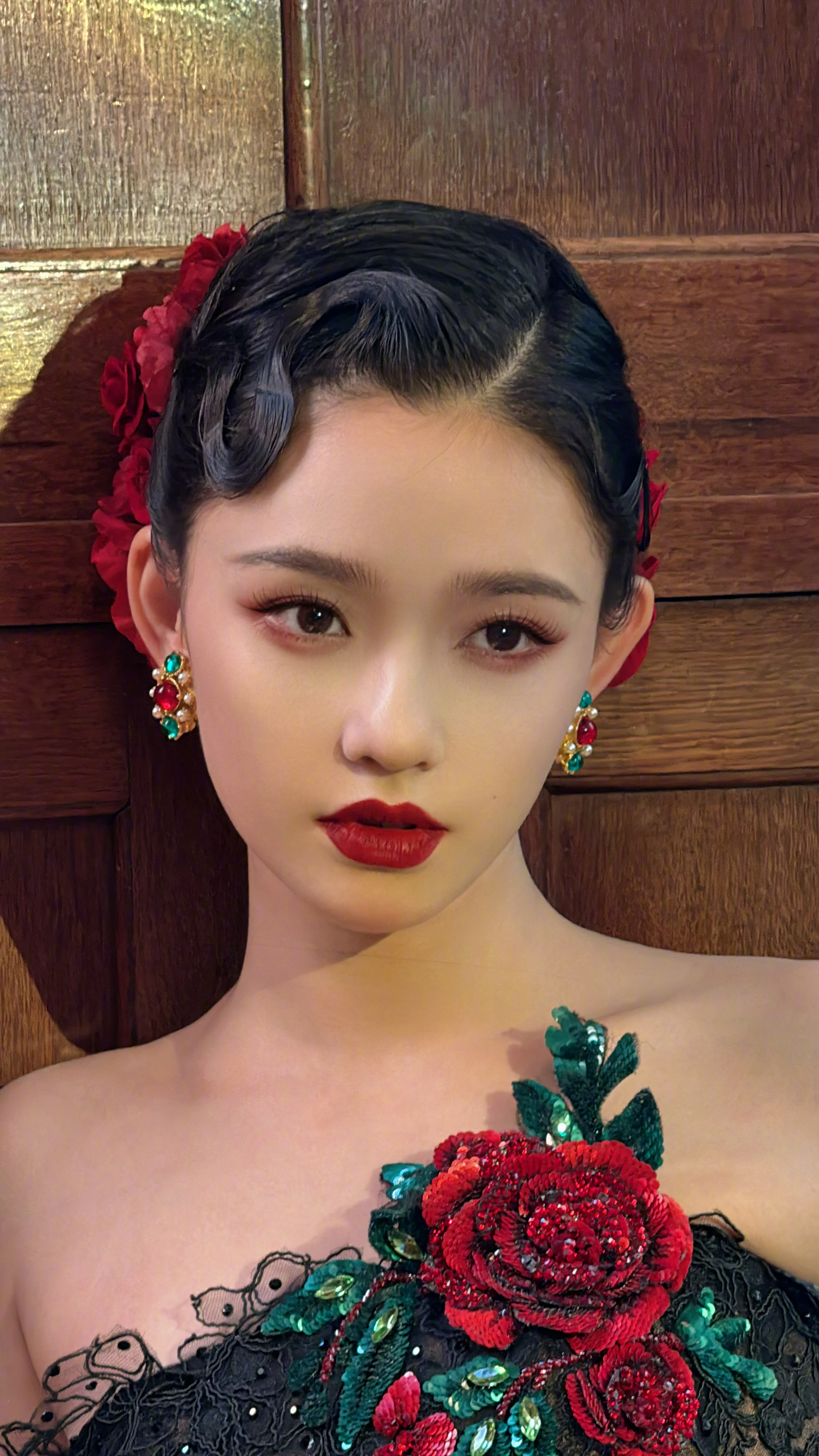 林允浓颜妆造,热烈的玫瑰美人。林允