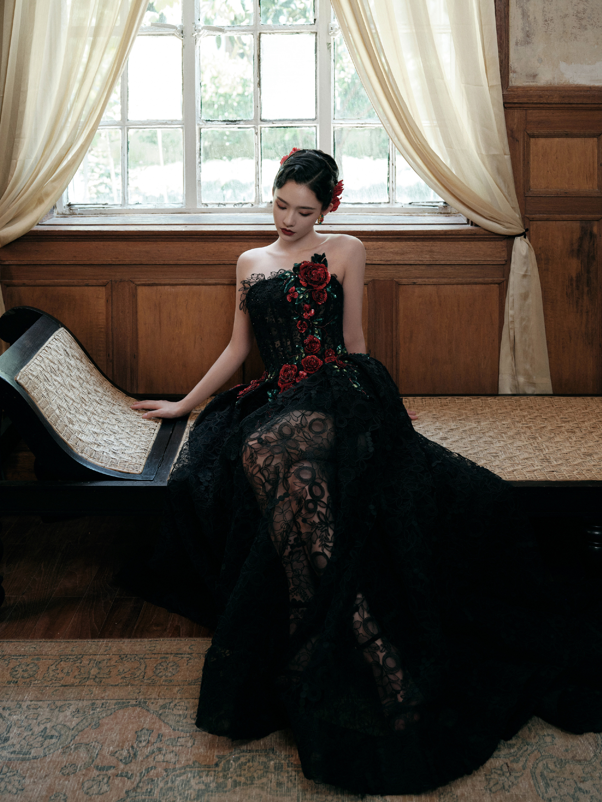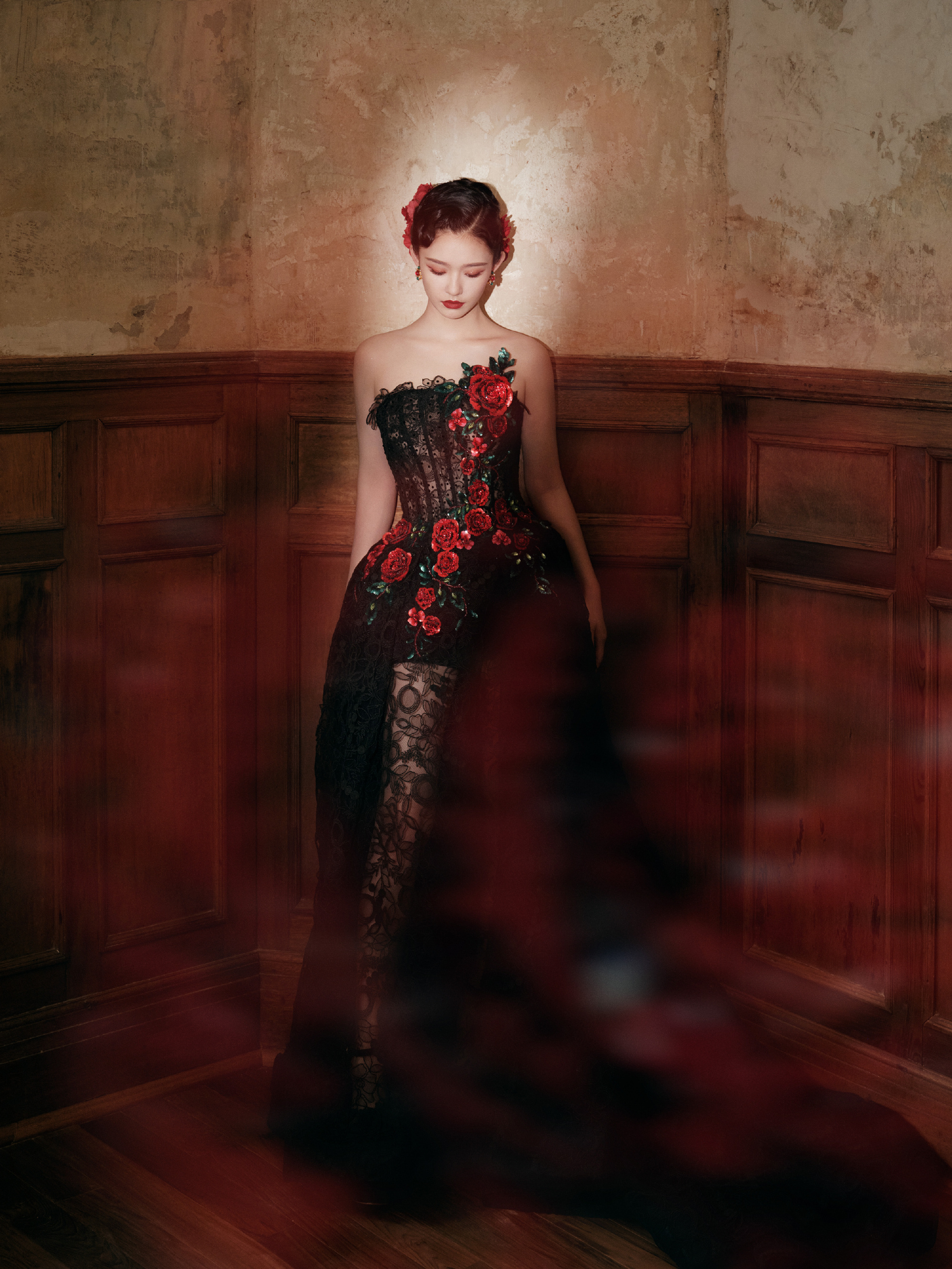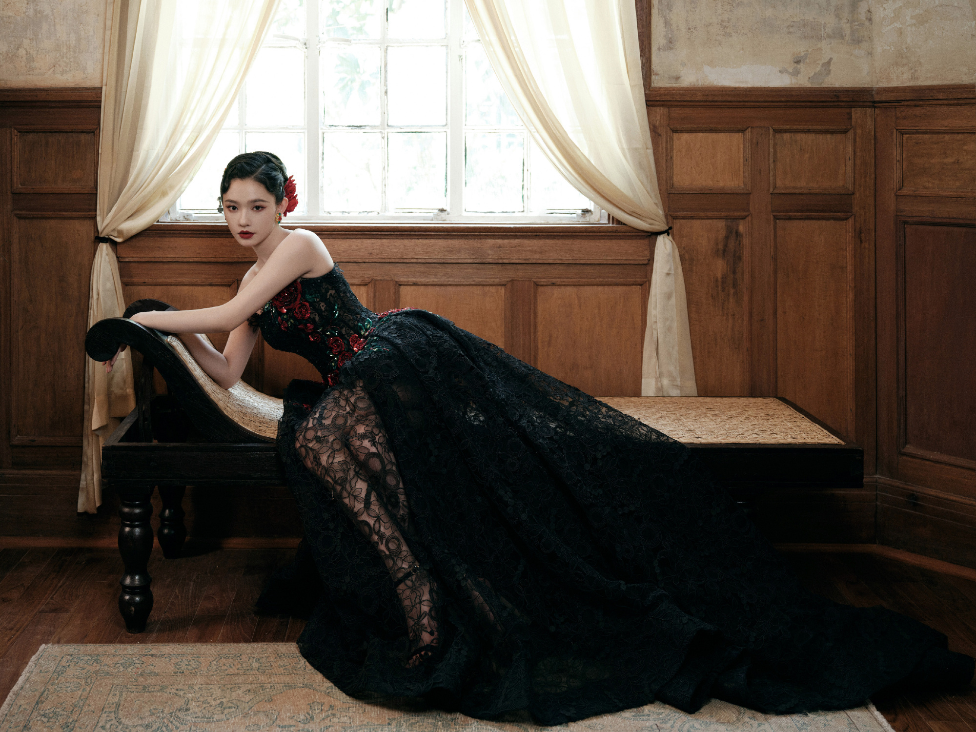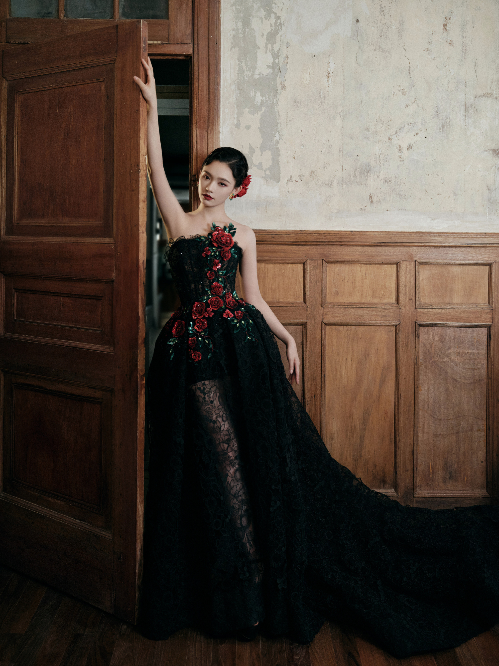 林允浓颜妆造,热烈的玫瑰美人。林允