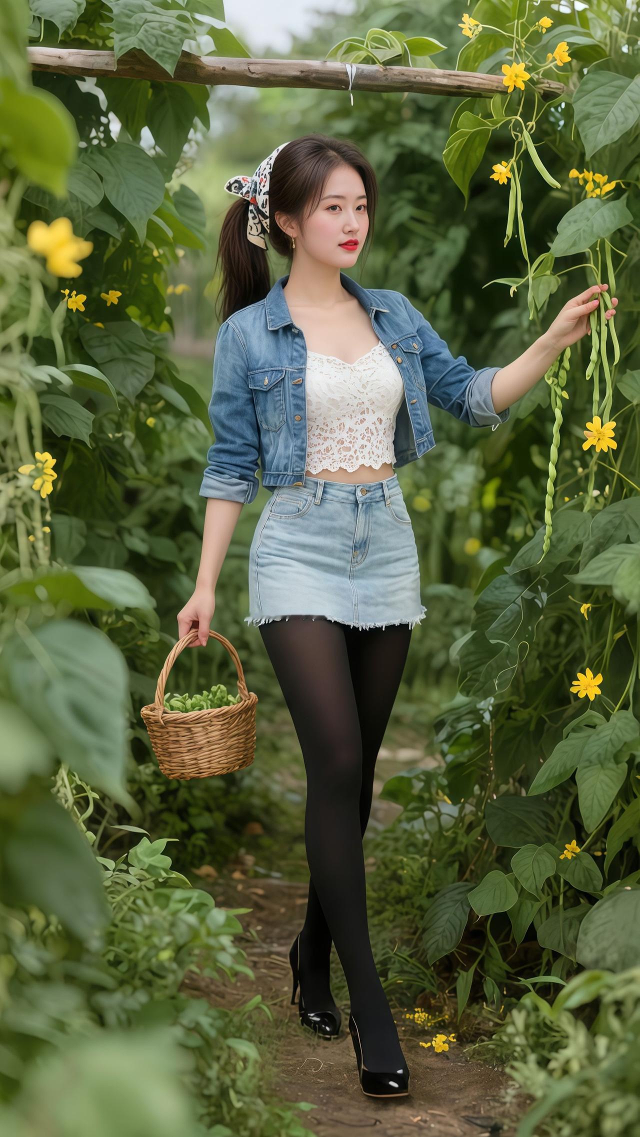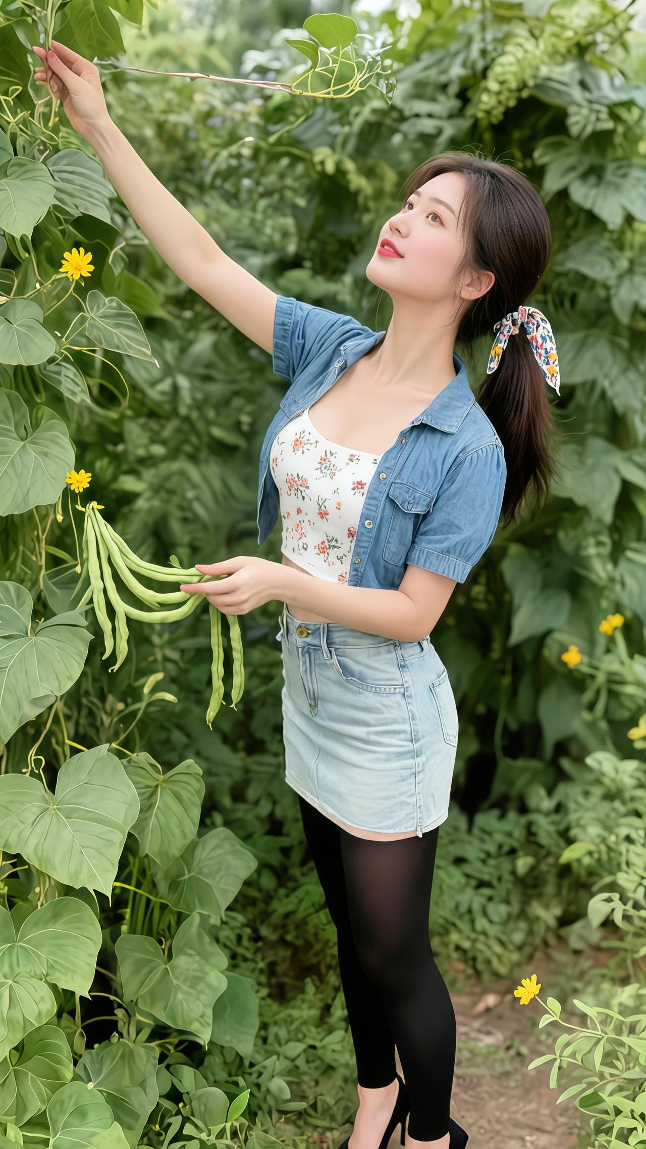 我的农村生活甜美女孩田园生活乐趣多摘菜