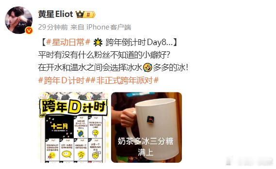 黄星小癖好黄星选择冰水 黄星选择冰水的小癖好超有辨识度!无论场景如何切换都偏爱这份清凉,简单习惯尽显随性个性,细节圈粉无数。