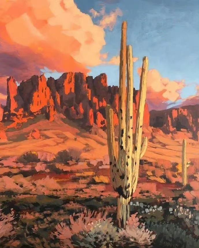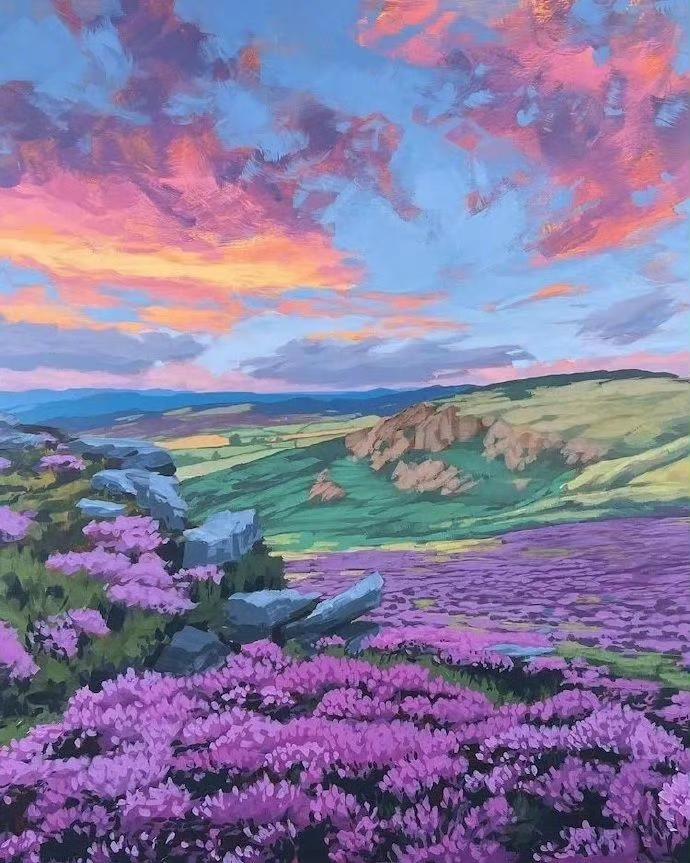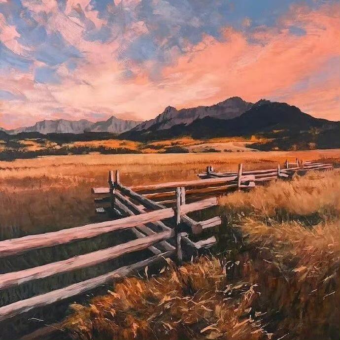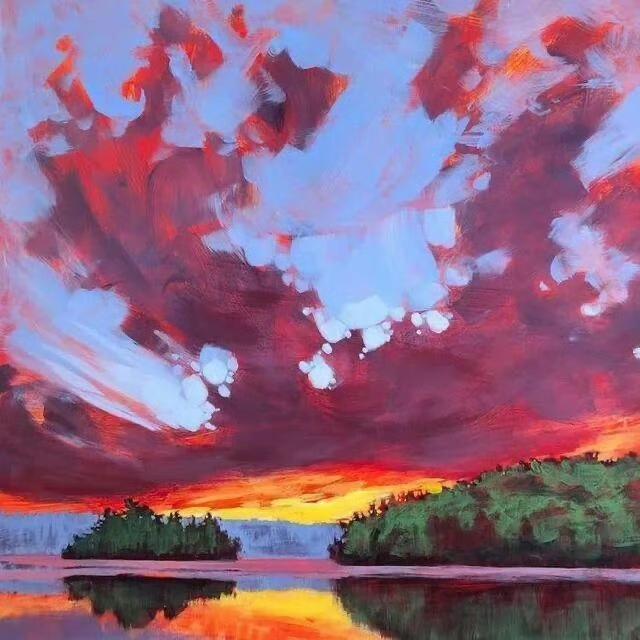 从代码到云彩!42岁程序员的“天空变法”🎨 谁能想到,敲了19年代码的James Musil,42岁那年放下键盘,竟把天空画成了调色盘里的诗! 他笔下的北美荒原,没有多余细节,只剩色块碰撞出的情绪——夕阳把云染成熔金,荒原的绿与天际的紫较劲,粗犷笔触里藏着程序员式的精密:每一块丙烯的浓淡、每一笔的轻重,都像经过算法校准,却又漫溢着自由的野性。 原来代码里的逻辑与严谨,换种形式也能惊艳:他把现实风景翻译成绚烂色块,让我们看见,生活的跳转键从来都在自己手里,42岁的重启,照样能画出比晚霞更热烈的人生✨