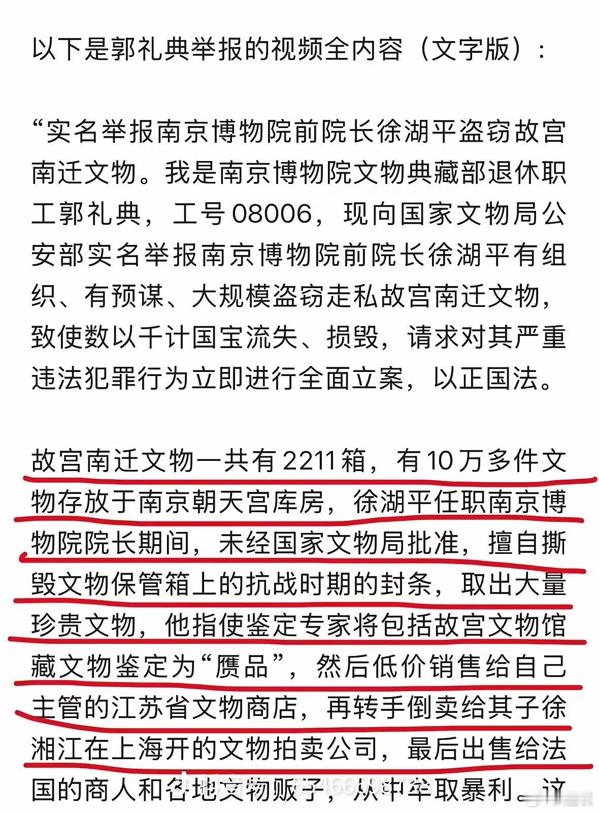 出手了!公安纪检文物总局联手彻查南博事件,这6个人这回彻底睡不着,谁都别想全身而退!前院长徐湖平是核心关键,签字划拨文物却甩锅不知情,名下文物总店低价贱卖“伪作”,猫腻一查一个准。现任院长履职不力,藏品交接不盘查,庞家后人查捐画遭拒,非要打官司才放行,履职尽责就是空谈。更可恨那些被指使的专家,真迹鉴伪成帮凶,上千件藏品怕是早被洗白倒卖。徐湖平儿子任职期间扎堆开艺术品公司,还关联文物拍卖,父子间利益输送痕迹太明显。艺兰斋陆挺虽离世,其家人定能牵出《江南春》倒卖全链条,6800元贱卖转眼估值8800万,离谱至极。最让人愤怒的是背后保护伞,42名职工举报多年无果,正是这群人捂盖子护短。说到底,文物不是私产,博物馆是守门人不是盗墓者,漠视规则必被严惩!大家觉得这6人里谁的问题最该从严查处?评论区聊聊你的看法