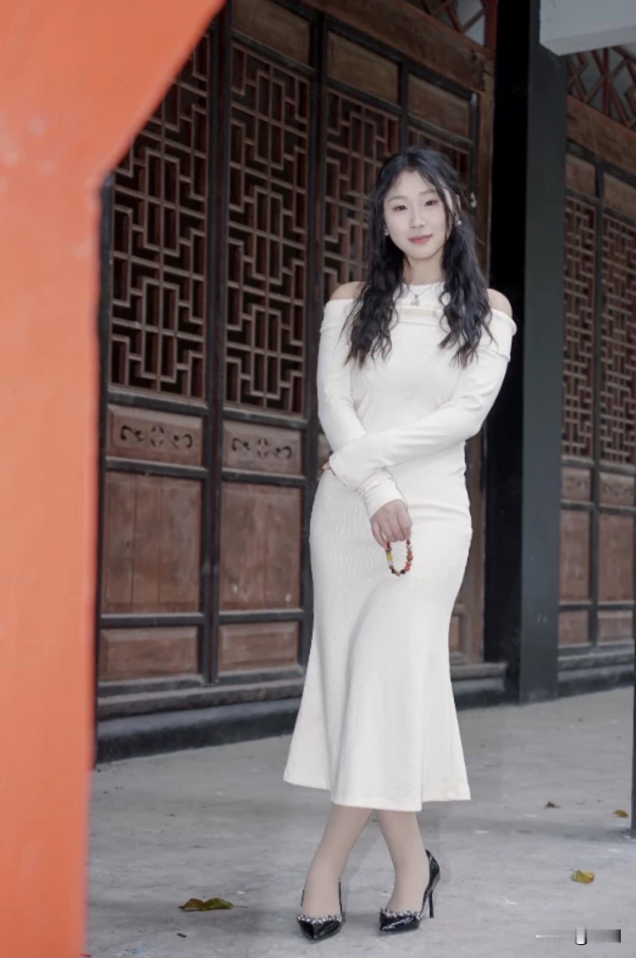 气质温柔穿搭分享优雅白裙,古典韵味,秋日漫步,韵味悠长。