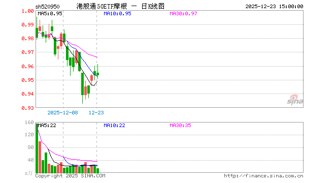 港股通50ETF摩根(520950)业绩比较基准为恒生港股通50指数收益率(经汇率调整后),管理人为摩根基金管理(中国)有限公司,基金经理为何智豪,成立(2025-10-29)以来回报为-4.19%,近一个月回报为-0.33%。
