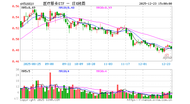 12月23日,医疗服务ETF(516610)跌0.82%,成交额161.00万元。当日份额增加100.00万份,最新份额为1.75亿份,近20个交易日份额增加700.00万份。最新资产净值计算值为8437.28万元。