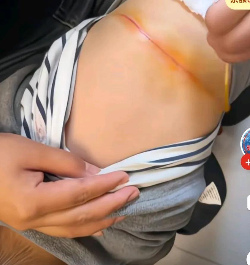 月嫂给宝宝换衣服,结果让宝宝不慎从床上掉下来,妈妈说, 换衣服才发现宝宝背上有一条这么长的伤口, 问了月嫂, 她也说不出来原因。 可能是摔下来时, 碰到那个旁边的物件被划破的。 这月嫂应该告诉家长的, 也不是故意的, 但是应该小心点。 唉,自己的孩子除了爸妈心疼, 别人真不能感同身受的。