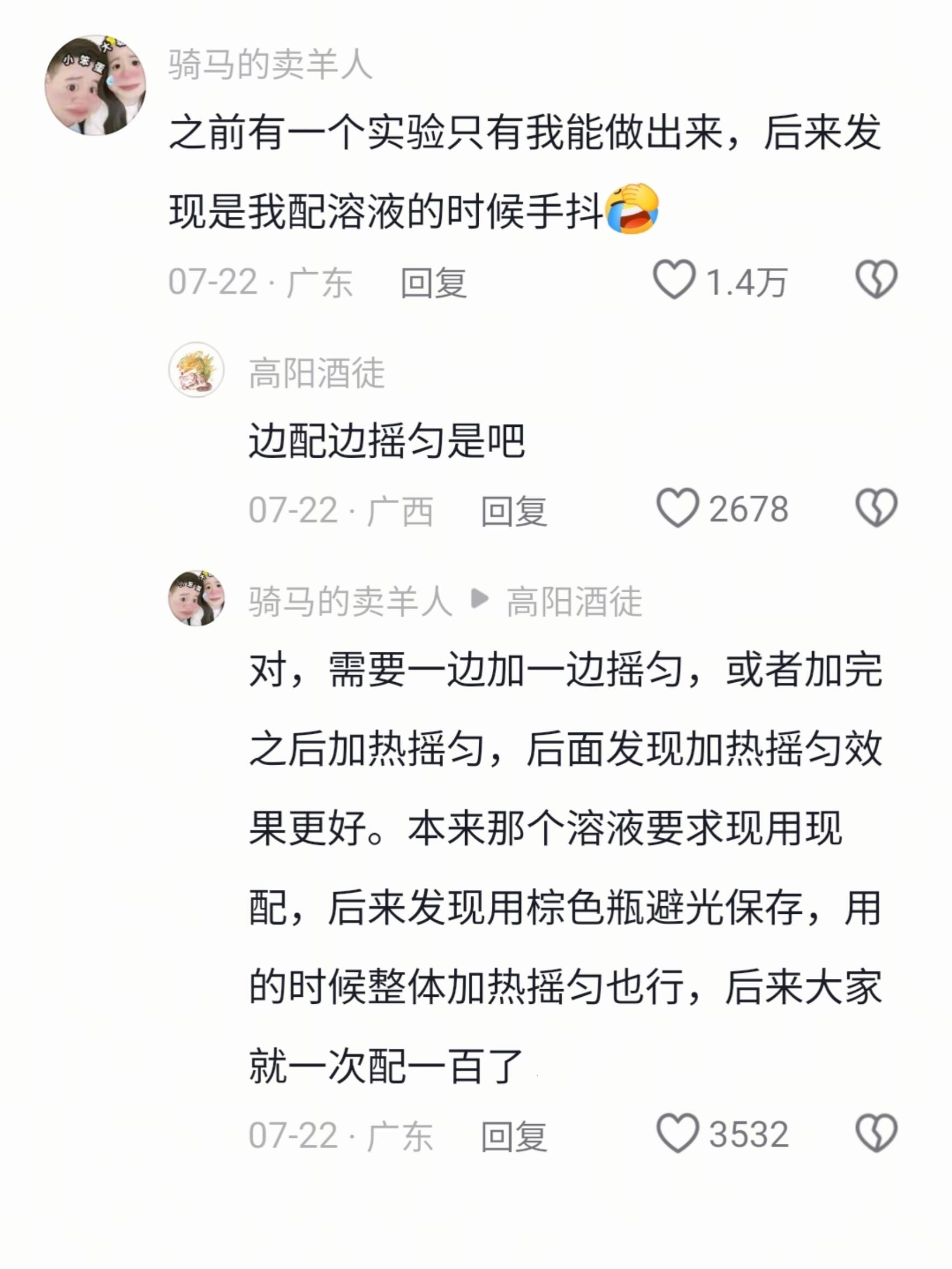 之前有一个实验只有我能做出来,后来发现是我配溶液的时候手抖