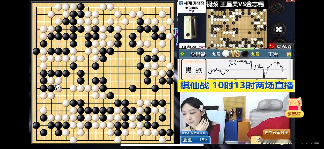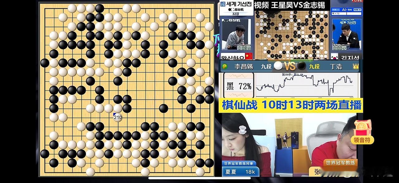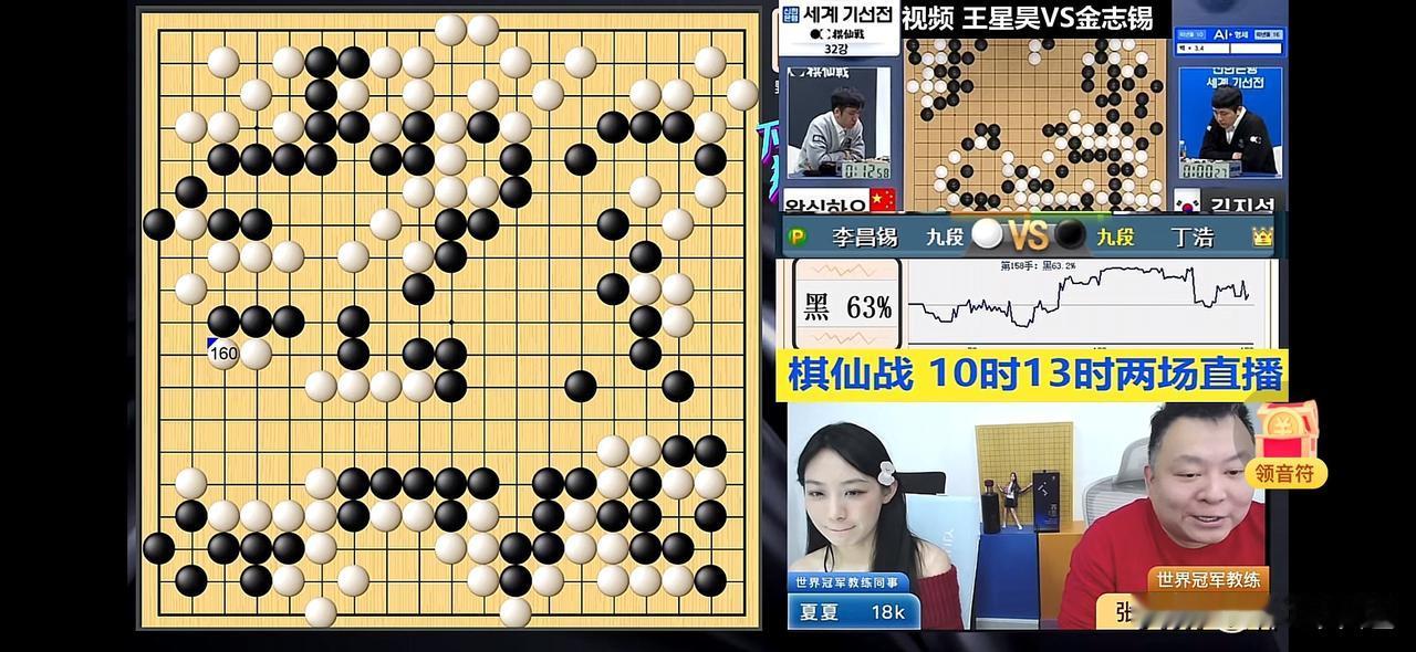 🔥🔥首届世界棋仙战首日最新战报🆕⬇️⬇️ 世界棋仙战战况激烈!目前王星昊执白胜率达98%,胜利在望,丁浩执黑激战中胜率63%👉72%👉9%👉4%形势严峻[捂脸] 04年后生王星昊可是厉害角色,此前在国手山脉杯国际大赛夺冠,还力克韩前围棋第一人朴廷桓。在与朴廷桓那盘大战,他手握白棋,抓住黑棋左边势力判断失误的机会,在中腹占位领先,让黑棋认负。 不过2023年11月釜山三星杯的“推恩令”操作真让人无语,中国棋手内战率飙升,抽签程序还暗埋国籍标签。棋手们心里别扭,AI显示集体失误+15%。希望中国队能破局,在这次棋仙战中冲冠! 上午的另外两场中韩大战,赖均辅vs辫子,杨楷文vs安成埈的比赛进行中,期待中国选手好运👍