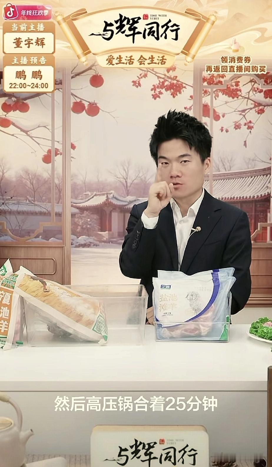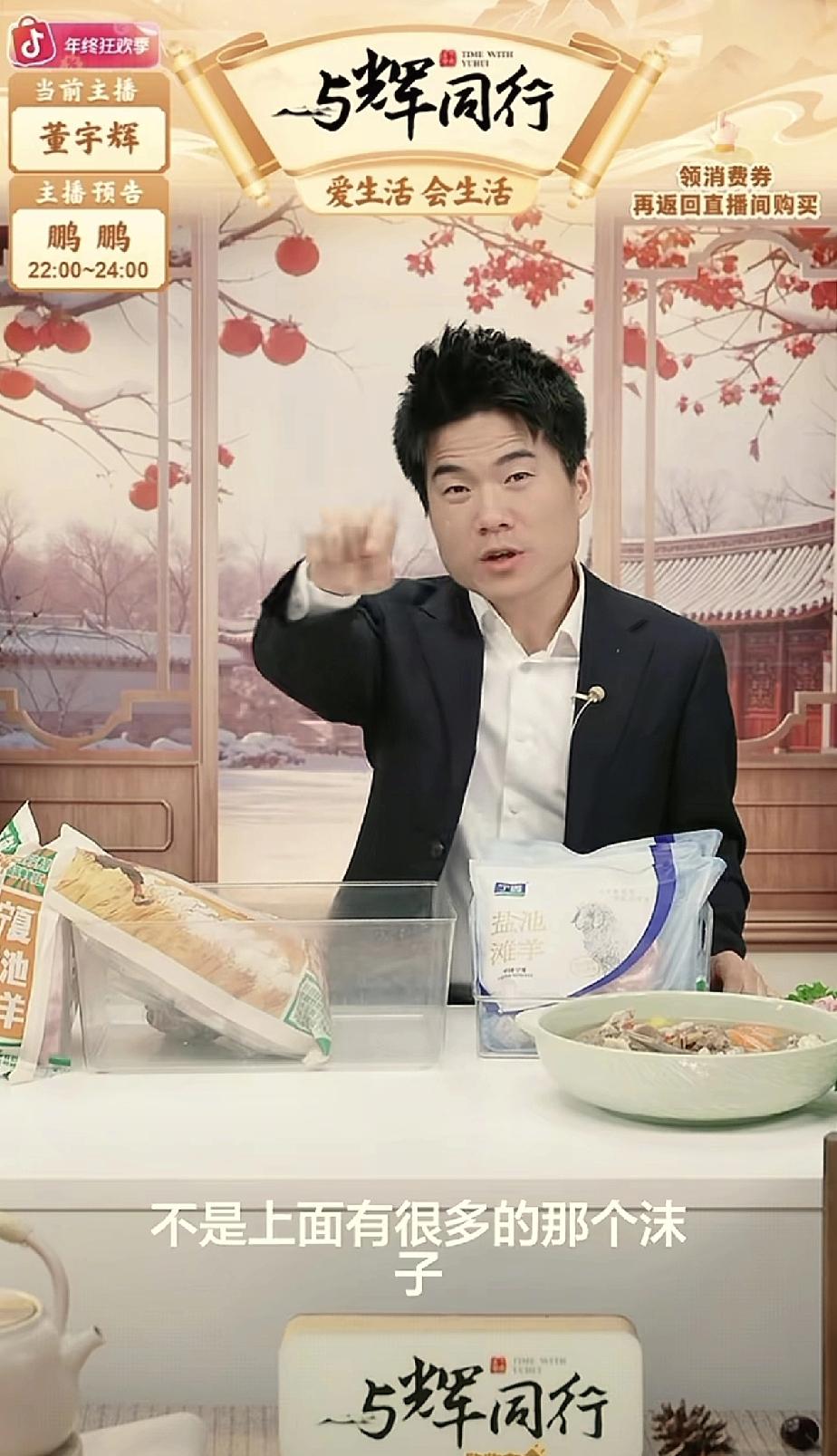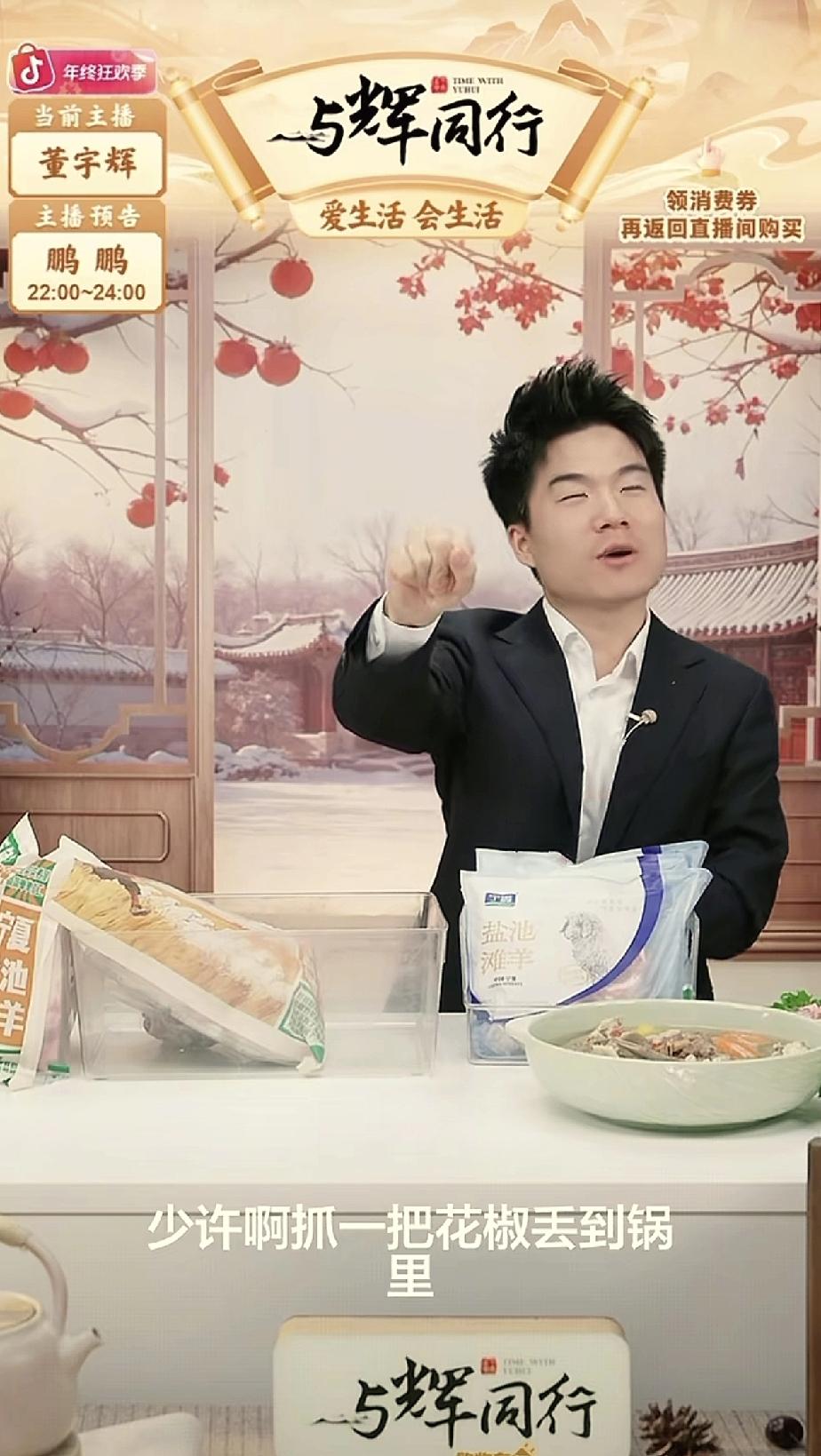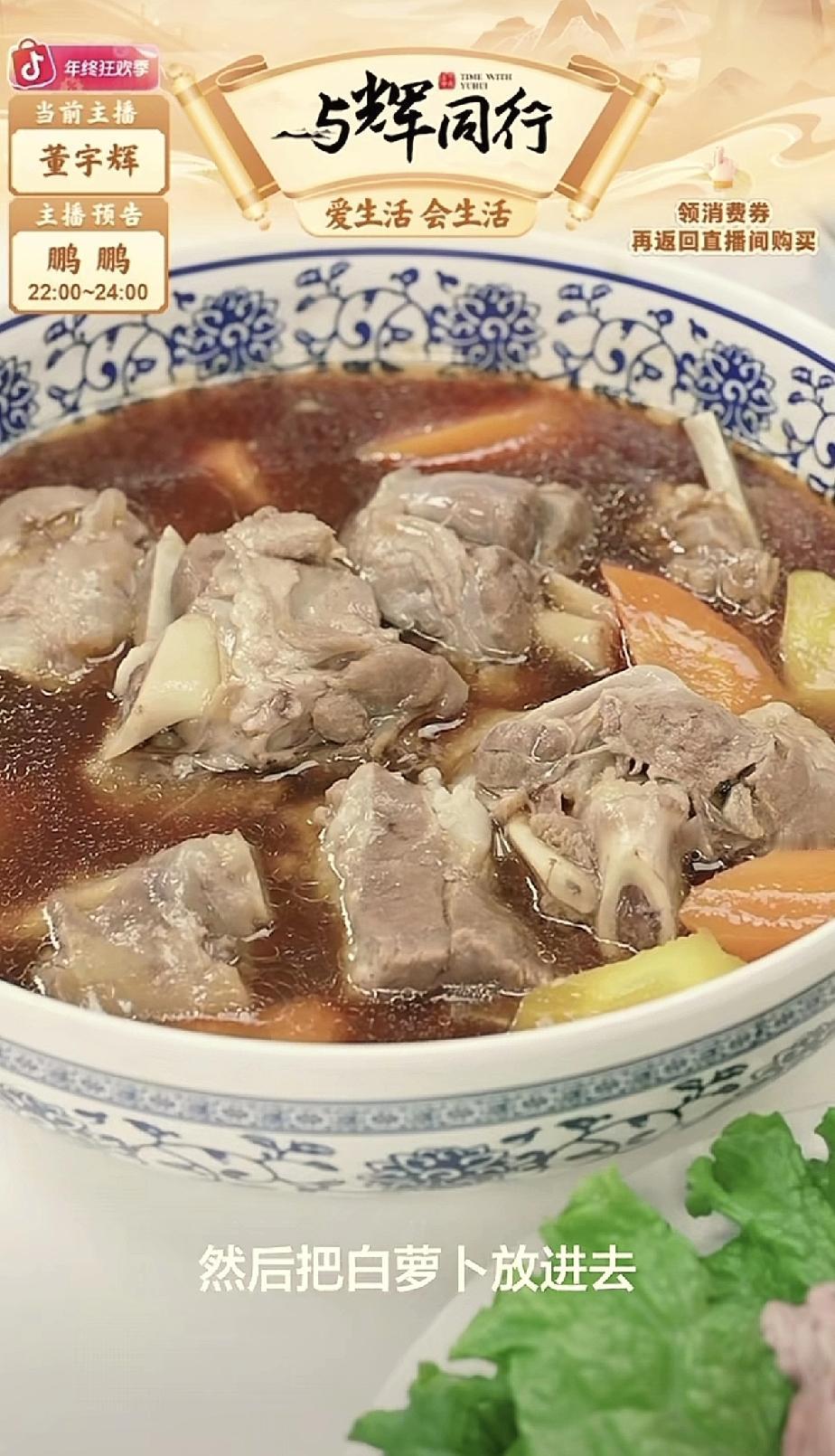 董宇辉的独家秘制炖羊肉方法来了… 董宇辉12月23日晚在上播时,又给大家传授了他独家研究出来的没羊膻味的炖羊肉方法,以下是具体操作步骤: 第一步羊肉要先做好预处理:羊肉前一晚从冷冻柜里拿出来放到冷藏柜里自然解冻一个晚上,第二天把解冻好的羊肉先用凉水浸泡一段时间,把血水彻底泡出来。 第二步接着就把泡出血水的羊肉用凉水下锅,然后放几片姜片,煮到沸腾后撇掉表面血沫,这第一锅汤直接倒掉,膻味就少了大半,别担心营养流失,蛋白质都在肉里,汤里多是嘌呤。 第三步拿一个高压锅先烧一锅开水,然后放入焯水后的羊肉,多加姜片、三四个干辣椒掰段,抓一把花椒(用纱布包着不粘肉),盖高压锅盖先压25分钟。 然后就重点来了!宇辉说花椒一定要分两次放才不会苦,25分钟后开盖再补一把,然后把萝卜切厚片或长条,提前焯水去辛辣味,放进锅里,高压锅不再加压,当普通锅用,再开盖小火煮10分钟。 最后撒葱花、香菜,加盐调味就搞定,鲜而不膻,巨好吃! 据宇辉透露说,以上炖羊肉的方法,他自己已亲测多次,并且吃过的同事朋友都叫好,能把羊膻味降到很淡,不爱膻味的也能吃! 所以想吃羊肉又怕膻味的朋友可以按宇辉这个独家秘法试试看。