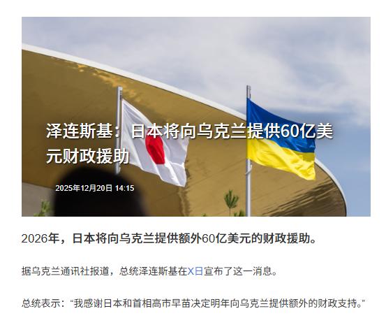 不只是俄罗斯傻眼了,就连我们都傻眼了,日本居然决定向乌克兰提供60亿美元援助,支持其对俄战争努力,更让人震惊的是,这60亿只是开胃菜,日本还会提前拨付30亿G7贷款,短短时间内乌克兰能从东京拿到整整90亿美金,手笔大到让人咋舌。 2025年12月20日,日本政府一锤定音,宣布给乌克兰发60亿美元援助,更狠的是之前承诺的30亿G7贷款要提前拨,算下来乌克兰短期内能从东京拿到90亿美金,这手笔放在全球都少见。 可能有人没概念,90亿美金是什么量级?相当于不少中小国家一年的GDP总和,乌克兰现在全靠外援撑着,这笔钱无疑是给它续了波大的。 别以为这60亿是随便撒钱,里面全是门道,主要用来帮乌克兰维持政府运转、修复能源设施,还有覆盖和冲突相关的各项开支,不是直接给军火但作用一点不差。 消息一出,最意外的除了俄罗斯,就是咱们普通人,毕竟日本和乌克兰隔了大半个地球,之前就算援助也是小打小闹,这次突然这么大方,实在让人摸不着头脑。 大家可以琢磨下,日本这么做真的是出于所谓的“正义”吗?恐怕没这么简单,这背后全是精打细算的战略小算盘。 首先得说,日本这是在给美国表忠心,借着援乌牢牢抱住西方阵营的大腿,提升自己在G7里的话语权,毕竟现在美欧内部对援乌有分歧,日本正好趁机补位刷存在感。 更关键的是,日本一直在推动所谓的“国家正常化”,借着援乌的由头,悄悄打破自己的防卫限制,2025年它的防卫相关费用都提到11万亿日元了,提前两年达成了占GDP2%的目标。 而且日本早就不满足只在亚太折腾了,2024年7月北约75周年峰会上,当时的日本首相岸田文雄就说“乌克兰的今天可能就是东亚的明天”,明着把欧洲的安全和亚太绑在一起。 这波操作还有个隐藏福利,日本给乌克兰送了不少扫雷装备,比如2025年援助的ALIS高精度地雷探测系统,能穿透30厘米土层找地雷,效率是传统设备的三倍,在哈尔科夫前线帮乌军清出了不少安全区域。 别小看这些装备援助,既帮日本军工产品打了广告,还能让日本企业提前布局,等冲突缓和了,乌克兰重建这块大蛋糕就能分一杯羹。 乌克兰这边自然是喜出望外,泽连斯基直接把日本夸成了推动冲突结束的关键力量,还说日本在发挥“领导作用”,说白了就是拿了钱就得说好话,毕竟现在能这么大方给钱的国家不多了。 泽连斯基也有自己的小算盘,他现在一直在拓展“调停朋友圈”,除了中美,还想拉上日本这些国家,就是为了在后续的谈判里多攒点筹码,不至于只看美俄的脸色。 有人可能会问,日本就不怕俄罗斯报复吗?肯定怕,但报复已经来了,2023年6月普京就签了法律,把9月3日定为“战胜军国主义日本及二战结束纪念日”,直接把态度摆到了明面上。 俄罗斯还关了和日本谈和平条约的大门,取消了日本渔民去北方四岛捕鱼的免签政策,导致北海道的渔民损失惨重,捕鱼量直接断崖式下跌。 日俄贸易也受了大影响,2024年两国贸易额骤降62%,只剩78亿美元,比2021年制裁前缩水了六成还多,2025年也没好转,这些都是日本援乌要付出的代价。 更有意思的是,日本老百姓也在为这波操作买单,能源价格涨得厉害,天然气账单直接冲进了普通家庭的厨房,低收入家庭压力山大,防卫费用飙升也挤压了民生投入的空间。 日本这90亿美金援乌,不是慈善捐款,而是一场高风险的地缘政治投资,赌的是西方阵营的持续影响力,赚的是自己突破限制、拓展势力的机会。 这场横跨欧亚的博弈里,没有真正的赢家,冲突持续受苦的是普通民众,日本的野心扩张也可能给地区安全带来新的隐患,和平解决才是唯一的正道。 大家对此有什么看法呢?欢迎各位在评论区留言!