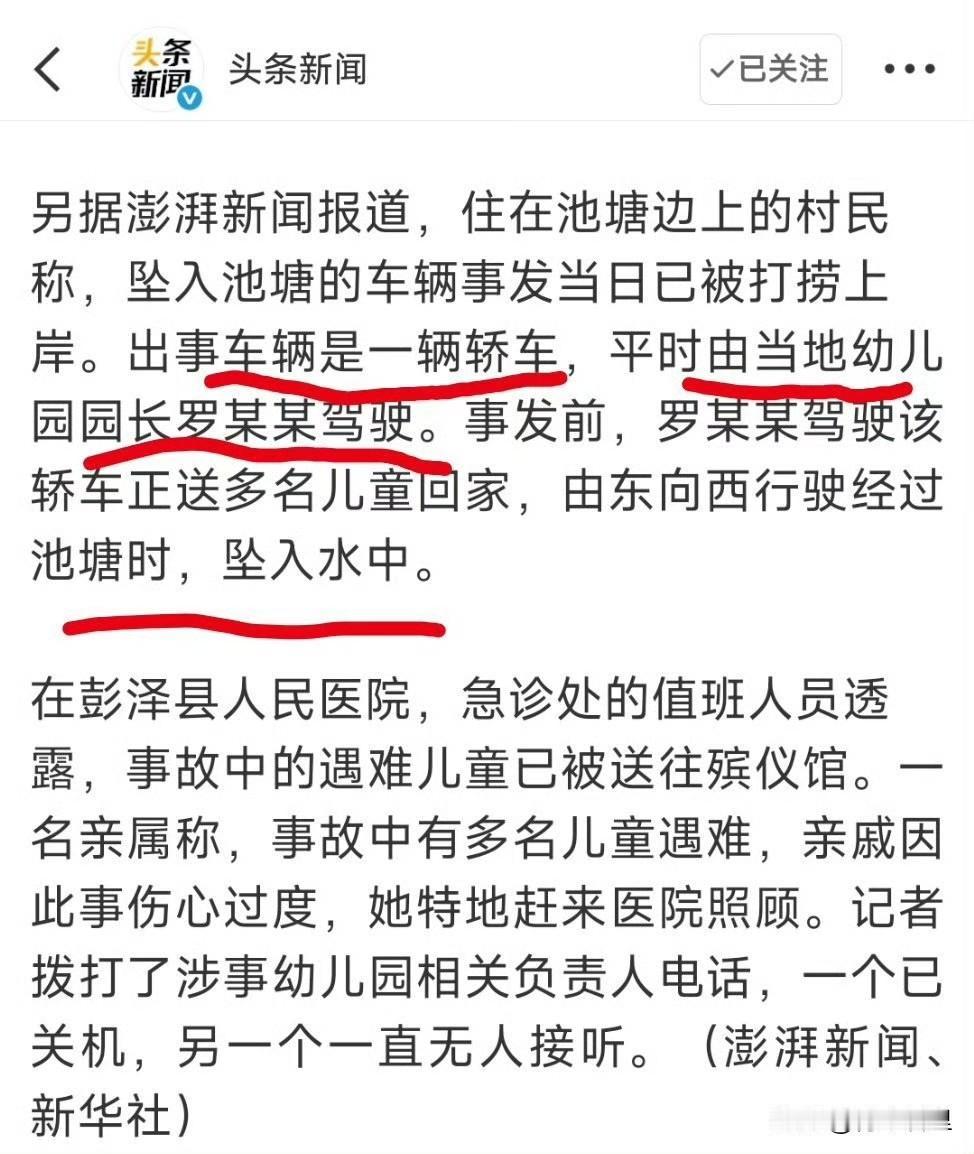 临近岁末,一起悲剧令人揪心。据报道,12月23日下午,江西九江彭泽县一辆轿车在乡村道路行驶时,不幸坠入路边池塘。经全力救援,车内8人被找到,但均已无生命体征,其中包括驾驶员和车上的多名儿童。 初步了解,驾驶员是当地一家幼儿园的负责人,当时正驾车送孩子们回家。事故具体原因还在调查中,有村民反映事发路段为下坡转弯处,且当天有降雨。 快过年了,本来是高高兴兴准备团圆的时候,却出了这样的事。天气冷了,路上有时候有雨有雾,道路上可能还会有结冰。出门在外,不管是开车还是坐车,到了路口、河边或者不熟的路段,真的要小心,速度慢一点,多看一眼。