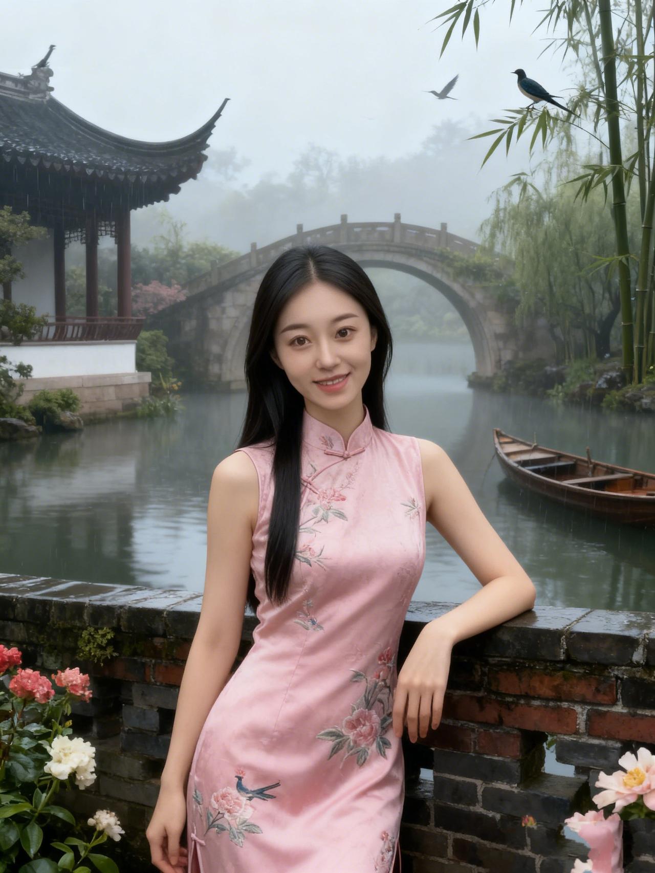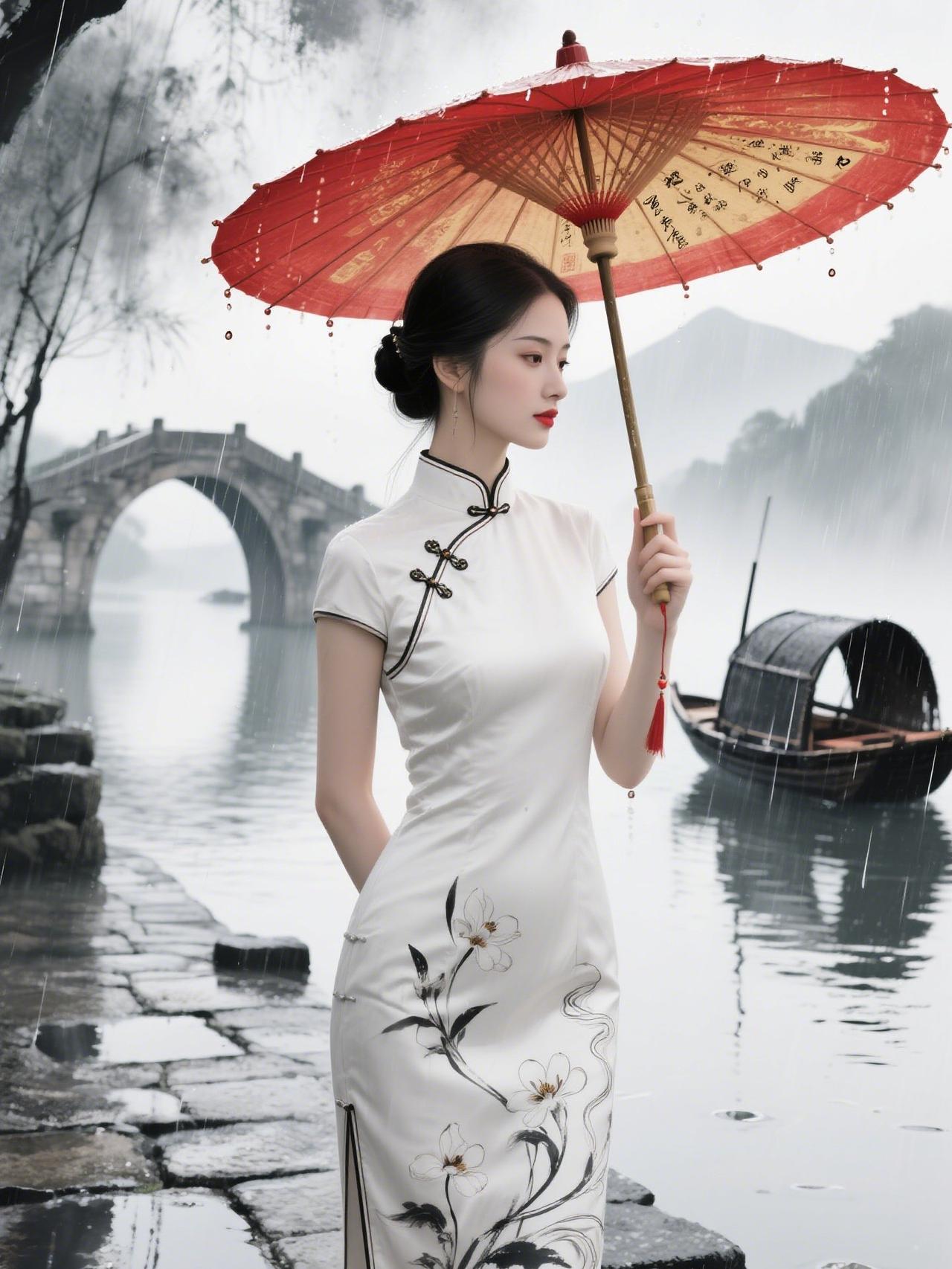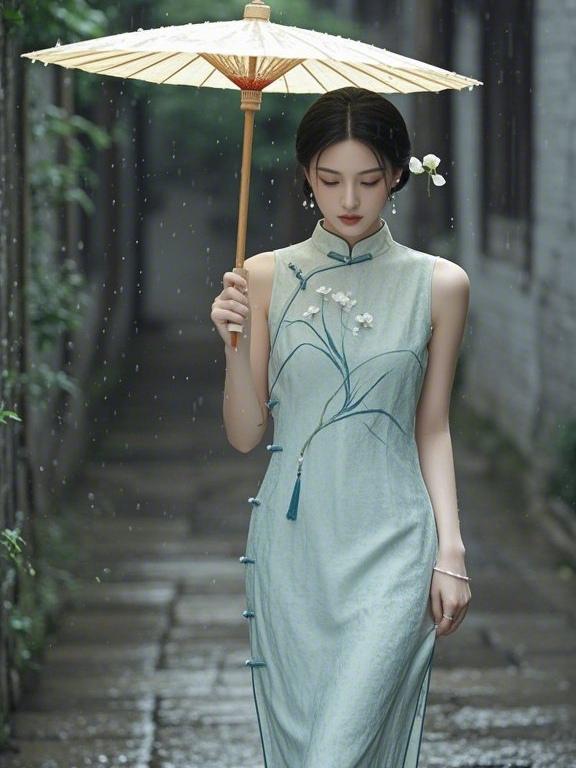 《盘扣锁住的江南》 青石板缝里洇出的软语, 被一寸一寸,收进斜襟的褶皱。
