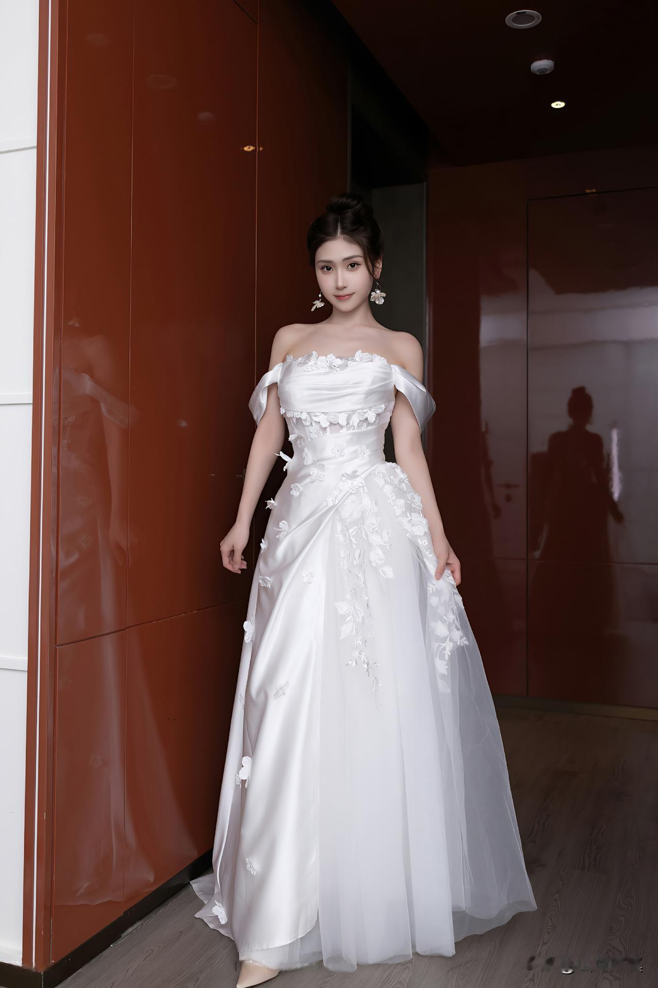 白纱凝韵绘温婉墨绿的背景晕着雅致的国风肌理,玉色花枝在旁悄然绽放,一袭纯白