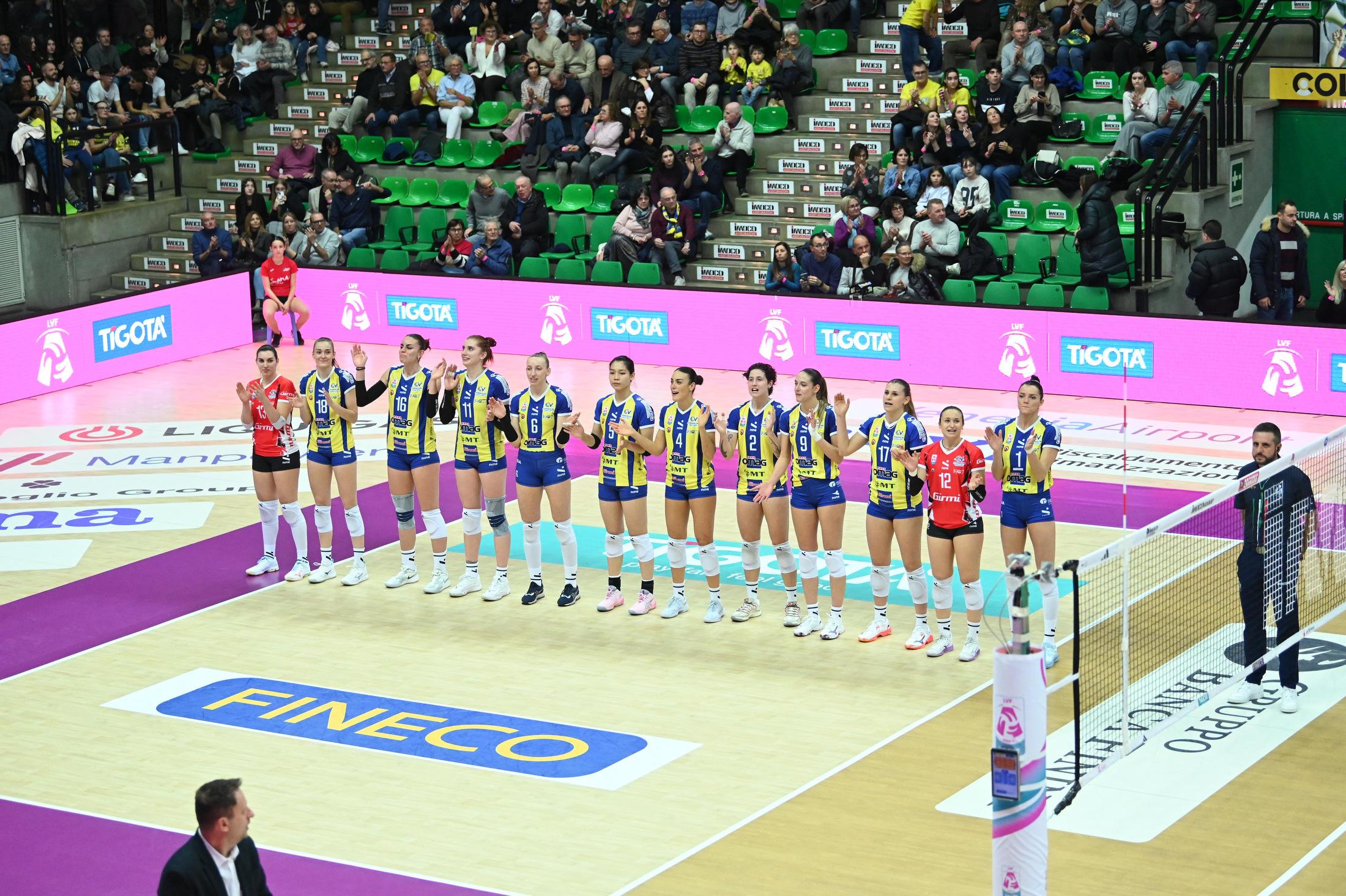 女排意甲上演中国德比朱婷12分单场MVP意大利女排联赛第16轮上演中国德比:朱婷效力的科内利亚诺3-0战胜庄宇珊加盟的圣乔瓦尼(25-23,25-17,25-19)。朱婷砍下12分荣获MVP(23扣11中1失误,1拦,8个一传2失误,63%到位率,25%完美到位率)。庄宇珊10分(27扣9中3失误,1拦,26个一传6失误,58%到位率,46%完美到位率)。