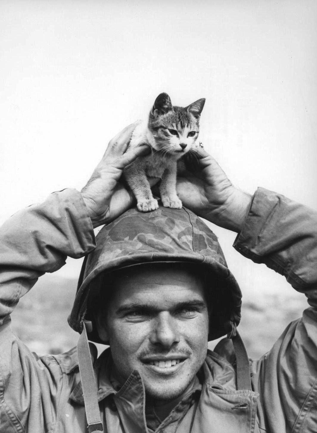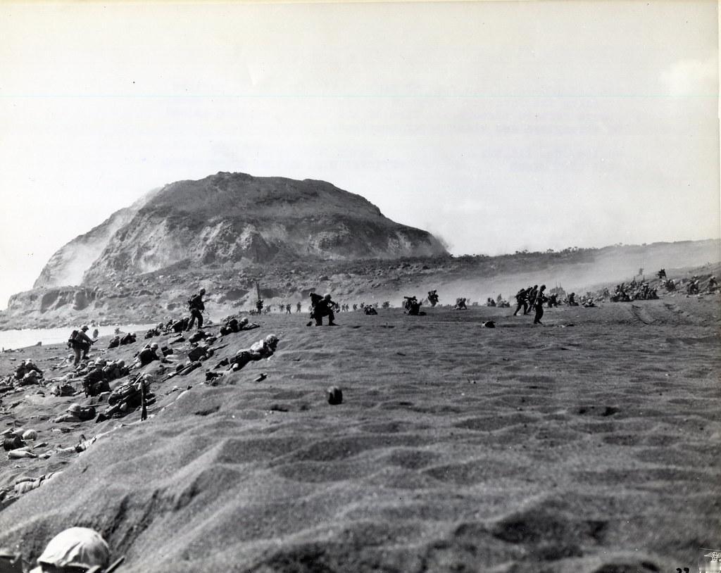 难得的战场闲暇——1945 年,硫磺岛,美国海军陆战队第 5 师下士爱德华・伯克哈特与一只小猫合影留念。他把小猫举到钢盔上,显得非常开心,不过小猫却看上去有点战战兢兢。[呲牙] 1945 年 2 月 19 日 —3 月 26 日,美军发起硫磺岛战役(代号 “冰山行动”),目标夺取这座位于东京与塞班岛之间的火山岛 —— 其机场是美军轰炸日本本土的关键中继站。美国海军陆战队第 5 师是登陆作战的三大主力师之一,承担了攻克折钵山(日军核心防御阵地,参见图2)的核心任务。战役中日军依托坑道工事顽抗,美军伤亡高达2.8 万人(伤亡率 30%,据说日军伤亡2.3万人,美军的伤亡人数第一次超过了日军),堪称太平洋战争中最惨烈的登陆战之一。