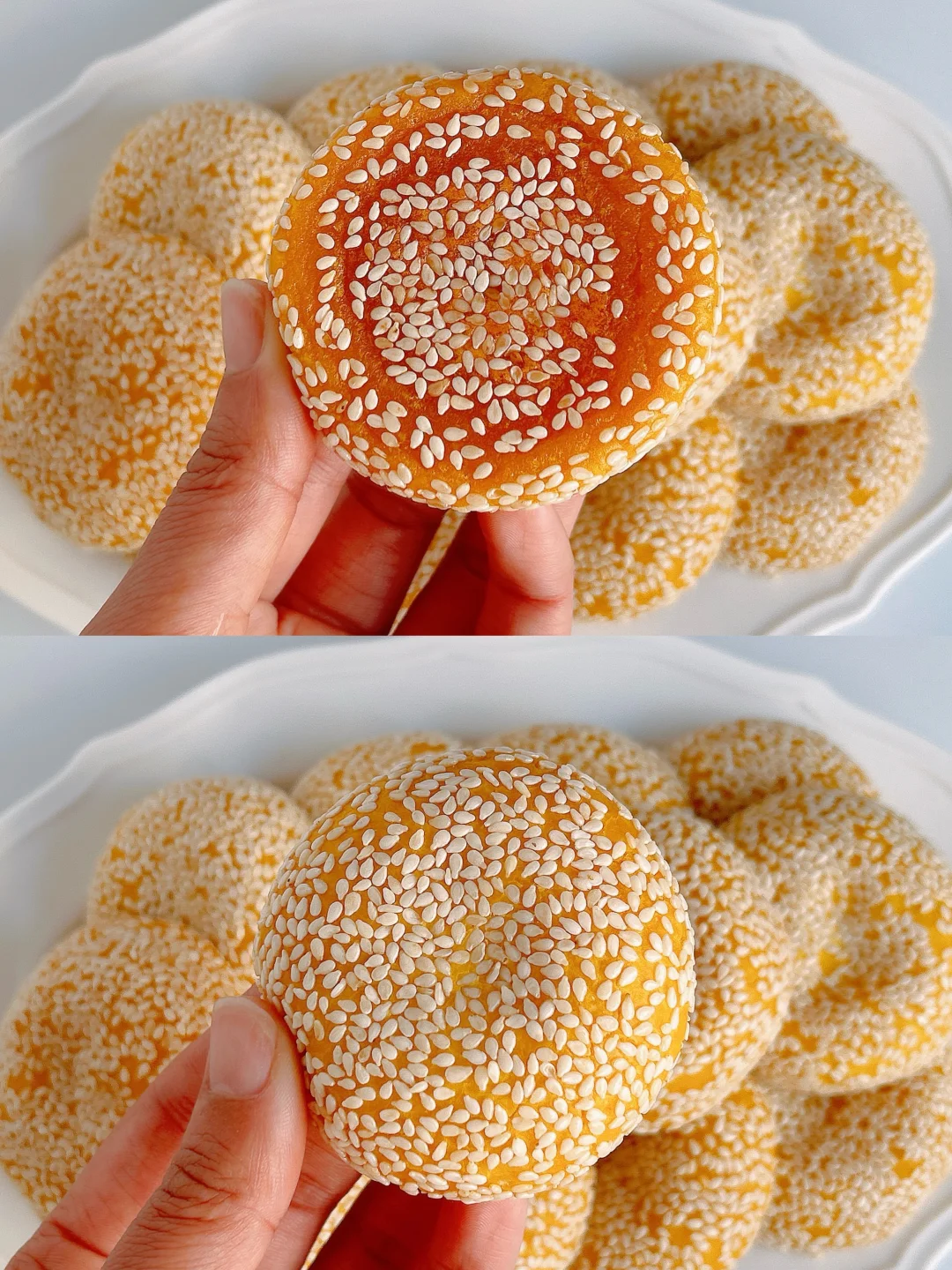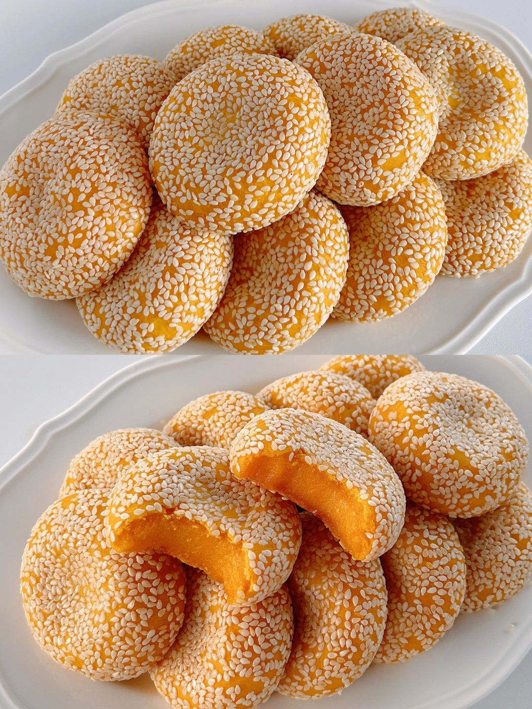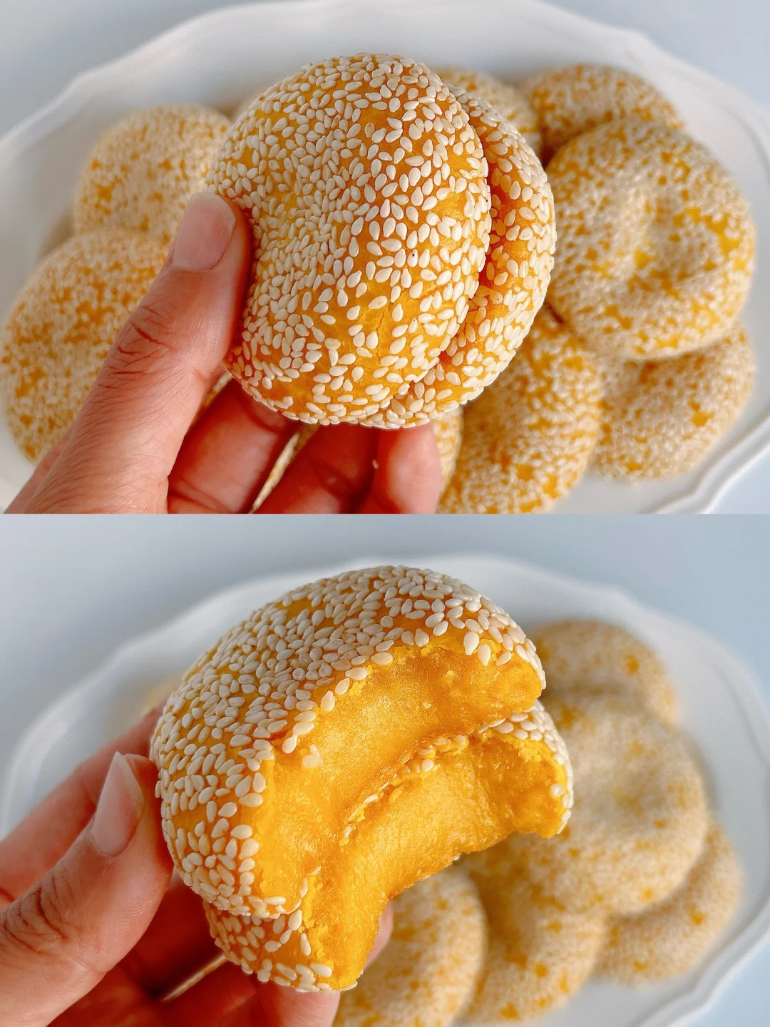 免油炸‼️糯叽叽的芝麻南瓜饼,零难度巨好吃