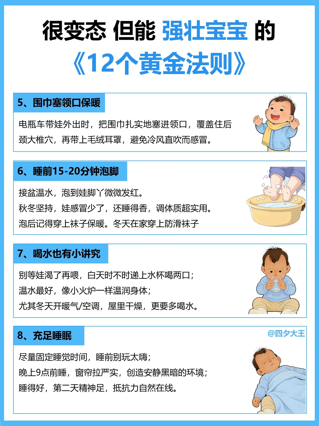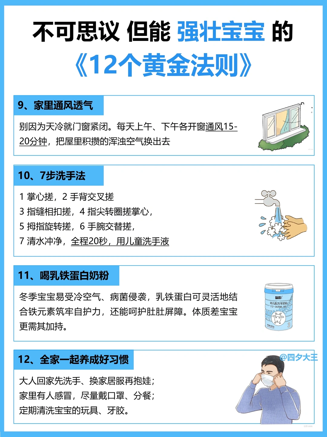 👉如果中了不止1条,别太焦虑!这说明你家宝宝身体里的保护力卫士需要更多能量和训练。体质是可以慢慢养好的,我整理了 12个壮娃小方法,都是一些亲测好用的技巧,比如: