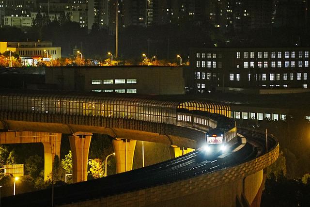 夜晚时分,5号线驶过黄家湖高架区段。通讯员产启斗摄
