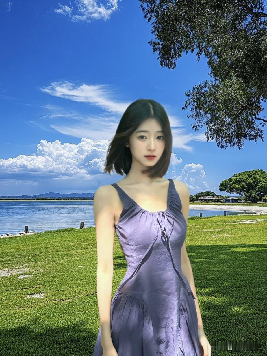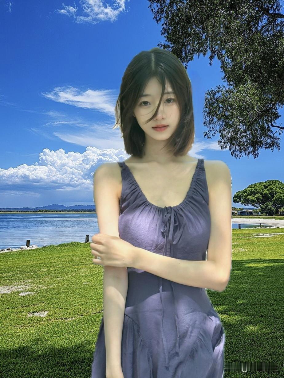 湖畔的紫衣春景湖水将青山映作软镜,风裹着草木的清甜漫来,恰好落在她立在岸边