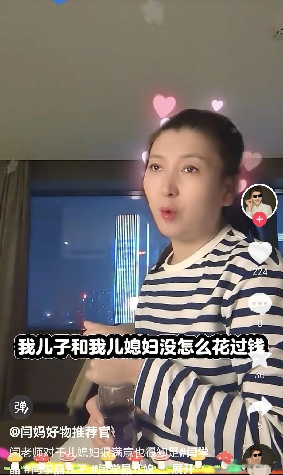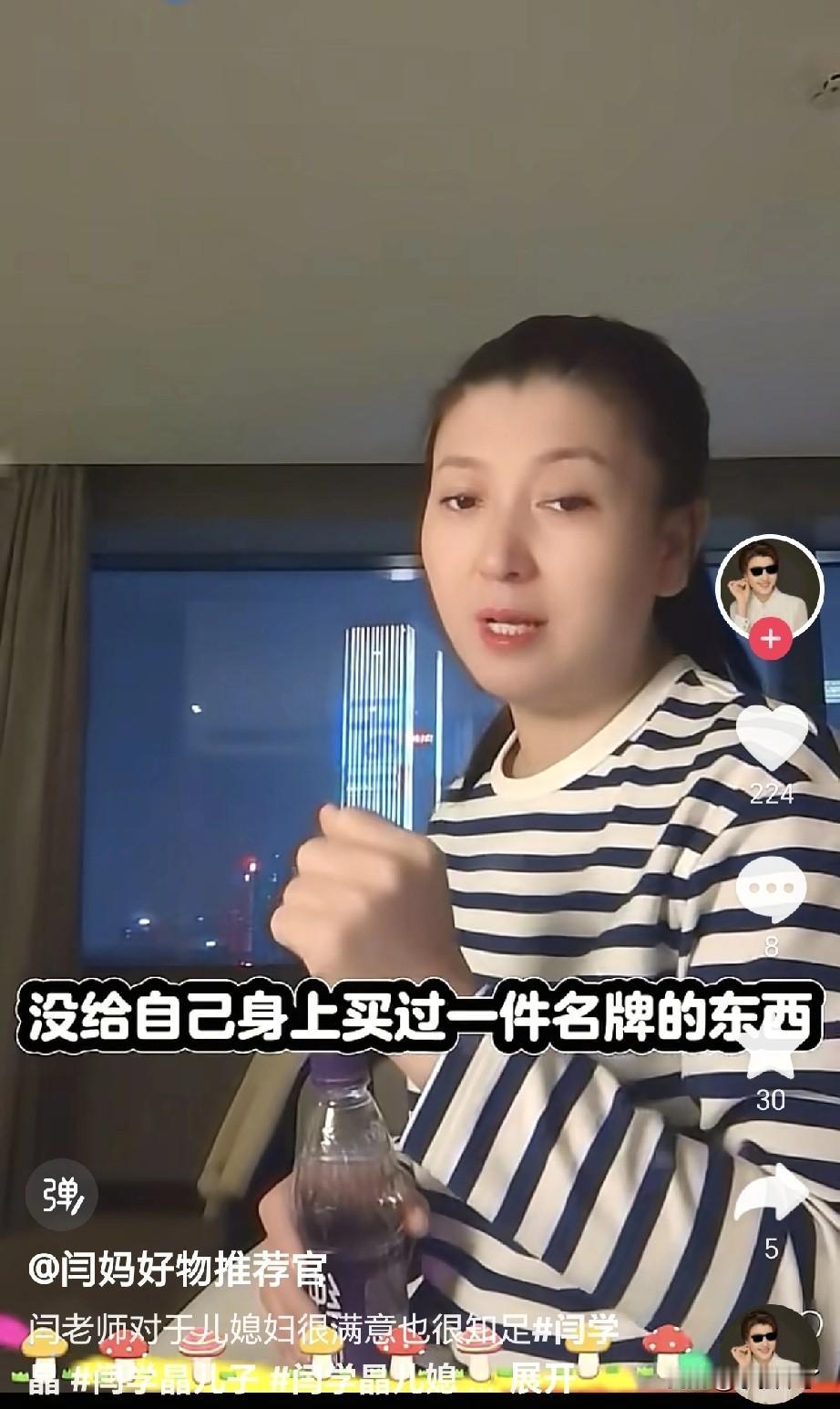 闫学晶在网络上的话并不都可信呀!近日吐槽说,自己儿子儿媳妇和不到3岁的孙子,在北京生活压力很大,正常来说,一年要100万左右的花销,可儿子拍戏年收入20万,儿媳妇戏剧团上班年收入8万,加一起才不到30万。这让网友纷纷认为,年轻人花钱大手大脚,这是去享受生活呀。可之前的视频中,闫学晶还说过:虽然自己条件好,但儿媳妇儿子生活非常节俭,平时不怎么花钱,甚至连一件名牌都没买过,这种精神富足让人欣慰。那么由此可见,没有房贷,年收入30万左右,应该没什么压力。可闫学晶为什么说儿子压力大呢?莫非找话题制造流量,准备直播带货?