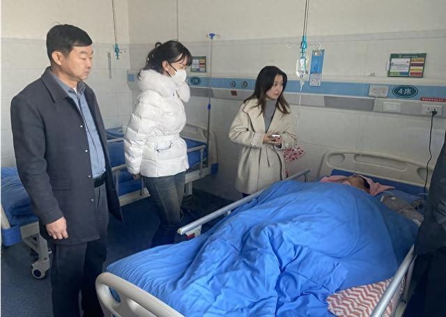 和田中心支公司党委委员、副总经理刘明辉与理赔条线相关工作人员前往医院探视承保车辆事故中的受伤客户。
