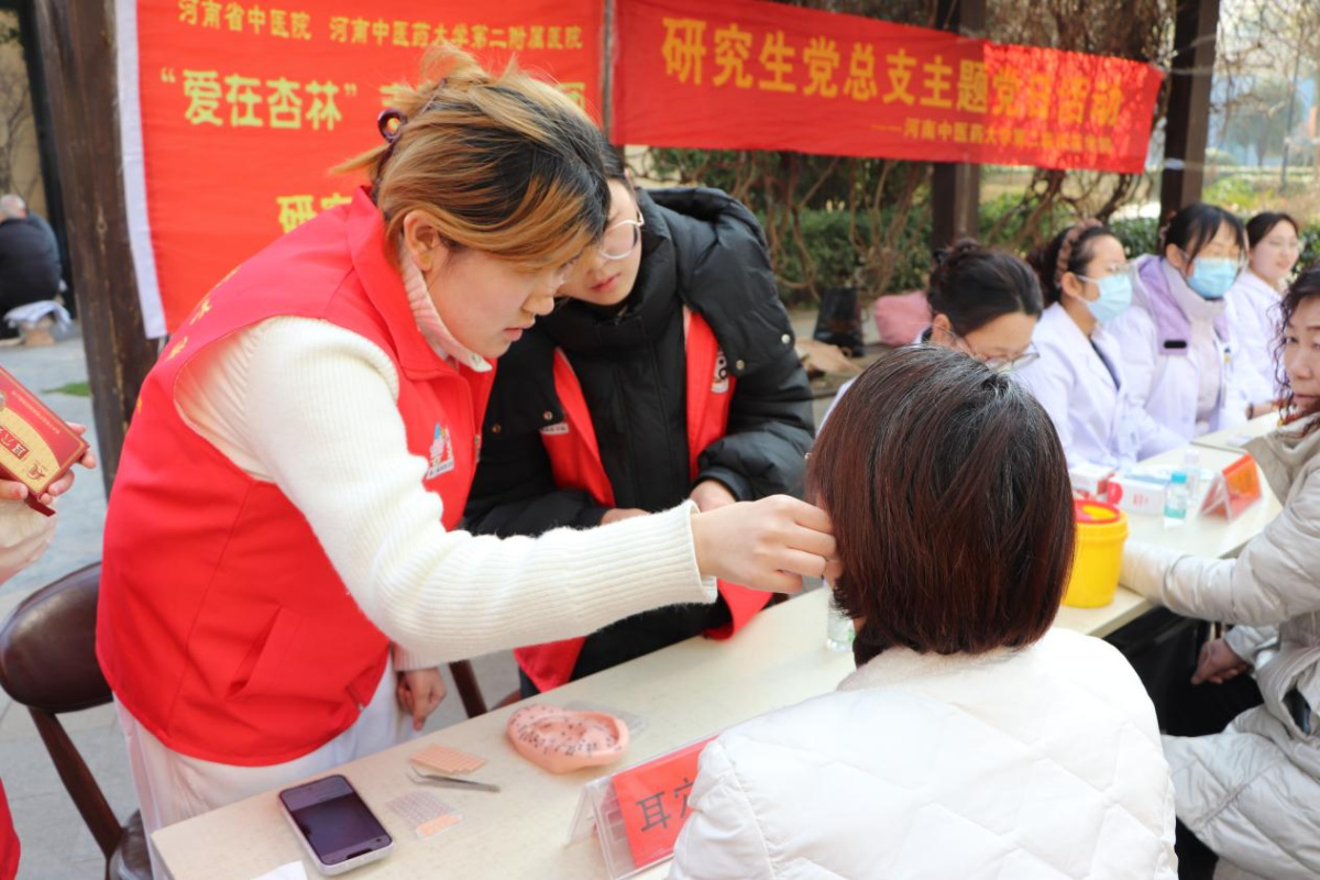 在郑州市金水区的多个社区,居民们对一群特殊的“健康顾问”已十分熟悉:他们身着白大褂,胸前佩戴党员徽章,不仅提供血压测量、耳穴压豆等实用服务,还带领居民练习八段锦、讲解节气养生知识,让中医药文化悄然融入日常生活。他们是河南中医药大学第二临床医学院的硕博党员志愿者。
