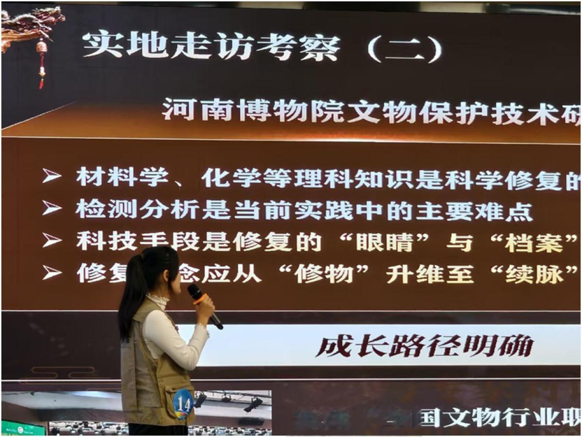 课堂所学需经实践检验,林怡然走进河南博物院文保中心、郑州市管城区文物局、河南省文物科技保护中心、郑州市文物考古研究院等单位实习,在知行合一中明晰行业需求,淬炼修复本领。