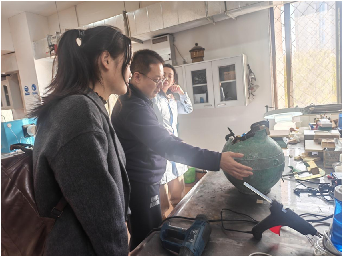 在河南省文物科技保护中心的实习,则让林怡然的专业认知实现质的飞跃。她系统学习文物检测分析全流程,从X射线荧光光谱仪检测器物成分,到显微镜观察锈蚀结构,再到制定科学修复方案,深刻认识到现代文物修复是“科技赋能+传统技艺”的融合创新。自此,她锚定“补强弱项、深耕科技修复”的方向,主动研习材料学、化学知识,为深耕青铜器修复筑牢基础。