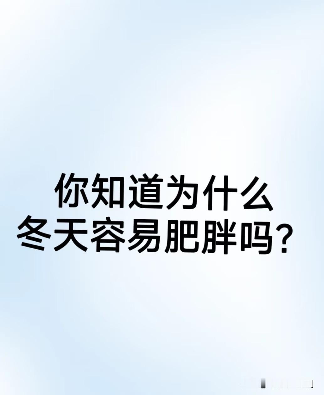 冬天容易胖主要是 吃得多、动得少的综合结果,再叠加一些特殊的生理和心理因素,在人类漫长的进化史中,冬季意味着食物短缺和严寒。身体本能地倾向于摄入更多高热量食物,并将其转化为脂肪储存起来,以维持体温和应对可能的饥饿。虽然现代社会食物充足,但这种囤积脂肪过冬的遗传本能依然存在。 一种抑制食欲的激素,天冷时分泌可能减少,让你感觉更容易饿。天气寒冷、日照时间短,人们更愿意待在室内,户外运动,如跑步、散步的意愿和机会大大降低。 即使是日常活动量,如通勤、外出办事等,也可能因为怕冷而减少。冬季饮食天然偏向于暖身的高热量食物,如火锅、炖肉、热汤、奶茶、热巧克力等,这些食物通常脂肪和碳水化合物含量很高。从秋冬开始,万圣节、感恩节、圣诞节、元旦、春节等一系列节日接踵而至。节日聚餐、派对往往伴随丰盛的大餐、零食、甜点和酒水,热量摄入极易超标。寒冷和昏暗的天气可能引发季节性情绪低落,人们更倾向于通过美食来获得即时快乐和慰藉。 厚重的冬衣遮盖了身体曲线,让人对体重的增长不那么敏感,自我监督放松,容易放纵饮食。室内聚会增多,社交活动常常围绕吃和喝进行。很多人会把减肥、健身的计划推到明年开春再说,导致冬季在行动上有所懈怠。 如何避免冬季胖,选择室内运动,如健身、游泳、瑜伽、爬楼梯、在家跟着视频锻炼,选择中午阳光好的时候短时间散步,利用一切机会增加日常消耗,如做家务、多走动。 在节日聚餐前,可以先吃一些健康食物垫底,避免过度饥饿时暴饮暴食。聚餐时,有意识地多吃蔬菜,放慢进食速度。
