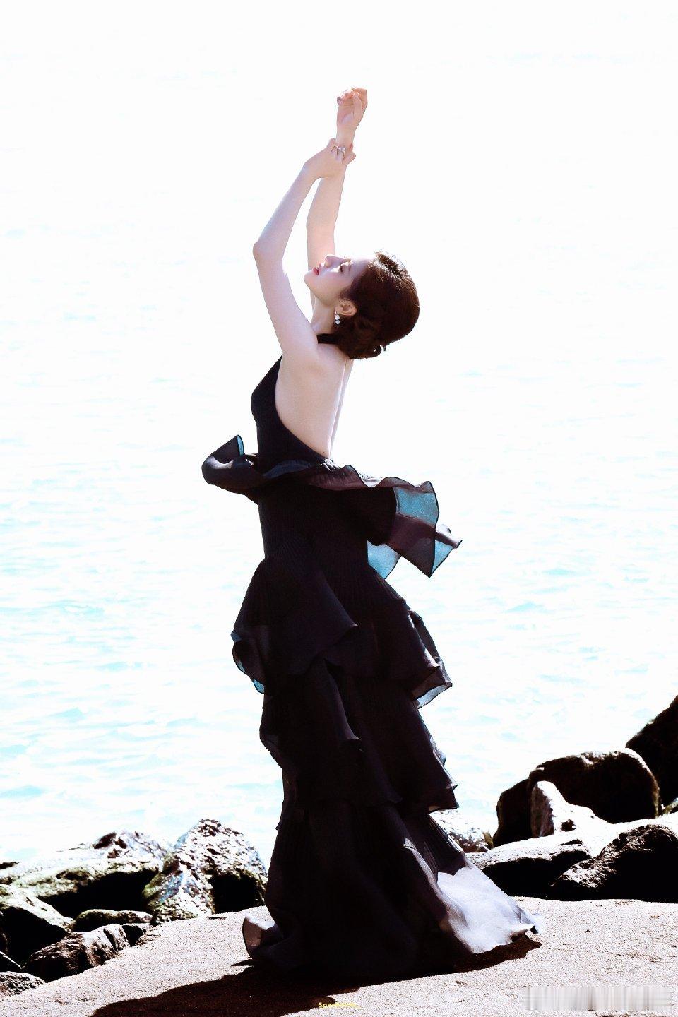 李兰迪黑天鹅李兰迪这组完全是优雅黑天鹅啊!一袭黑色挂脖深V露背裙,完美勾勒出她